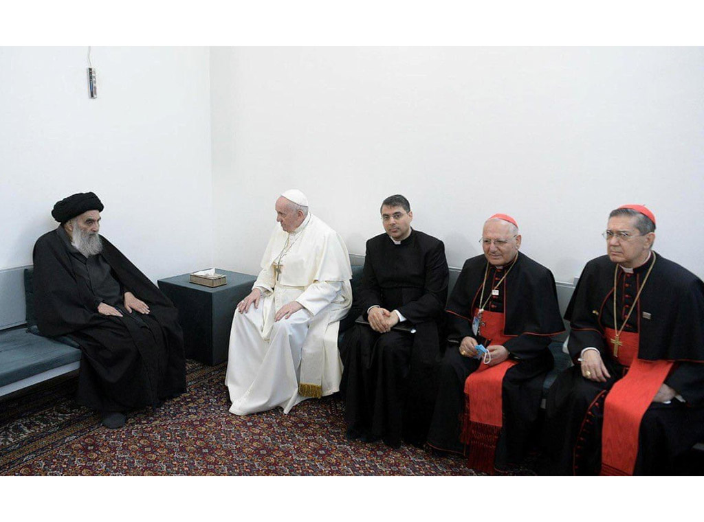 Također, sastanak je bio prigoda i da Papa zahvali velikom ajatolahu Al-Sistaniju što je zajedno sa šijitskom zajednicom, suočen s nasiljem i velikim nedaćama posljednjih godina, stao u obranu najranjivijih i najprogonjenijih, potvrđujući time svetost ljudskog života i važnost jedinstva iračkog naroda. Odlazeći od velikog ajatolaha izjavio je da nastavlja moliti da Bog, Stvoritelj svih, podari budućnost mira i bratstva voljenoj zemlji Iraku, Bliskom Istoku i cijelom svijetu.
