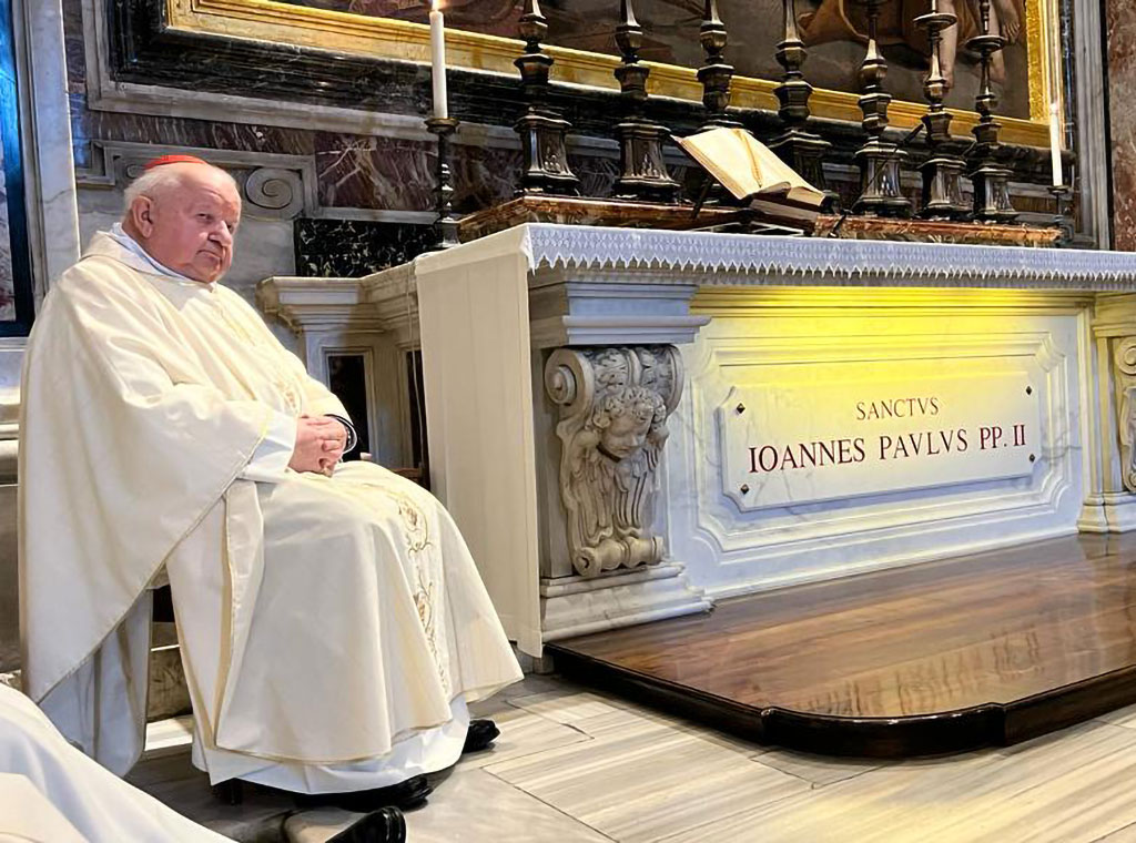 Nadbiskupija Kraków, na jugu Poljske, priopćila je da je kard. Dziwisz, koji je tu dijecezu predvodio od 2005. do 2016., slavio misu na grobu Sv. Ivana Pavla II. u bazilici Sv. Petra u Rimu.