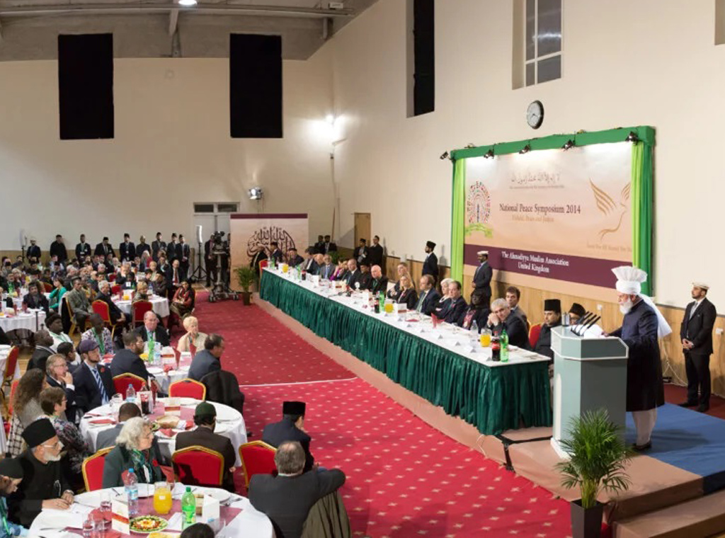 Simpozij mira organizirala je muslimanska zajednica u Londonu Ahmadija, koja tamo ima i svoje sjedište. Ahmadiju je osnovao Mirza Ghulam Ahmad 1889. kao pokret oživljavanja istinskog učenja islama kao vjere mira, ljubavi, pravde i svetosti života, kao i zalaganja za vjerske i druge slobode čovjeka. Po njihovom učenju „džihad po maču“ nema mjesta u islamu, te se zalažu za intelektualni „džihad olovke“. Zbog svojih stavova su diskriminirani i proganjani u više država Bliskog istoka, pa im je 1984., zbog državnih diskriminirajućih zakona sjedište zajednice preseljeno iz Pakistana u London. Trenutni vođa muslimanske zajednice Ahmadija je kalif Mirza Masroor Ahmad. Zajednica broji više desetaka milijuna sljedbenika i prisutna je u više od 200 zemalja svijeta.