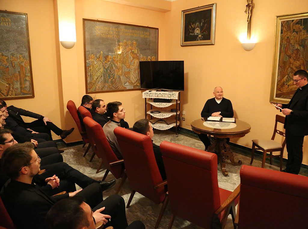 Biskupskoj vizitaciji prethodila je godišnja sjednica Nadzornog odbora Zavoda na kojoj su, uz rektora Marka Đurina i vicerektora Marka Škrabu, sudjelovali njezini članovi: mons. Miroslav Vidović, generalni vikar Splitsko-makarske nadbiskupije i župnik župa Budimiri i Biorine te preč. Richard Pavlić, svećenik Gospićko-senjske biskupije, župnik u Senju i profesor na Teologiji u Rijeci.