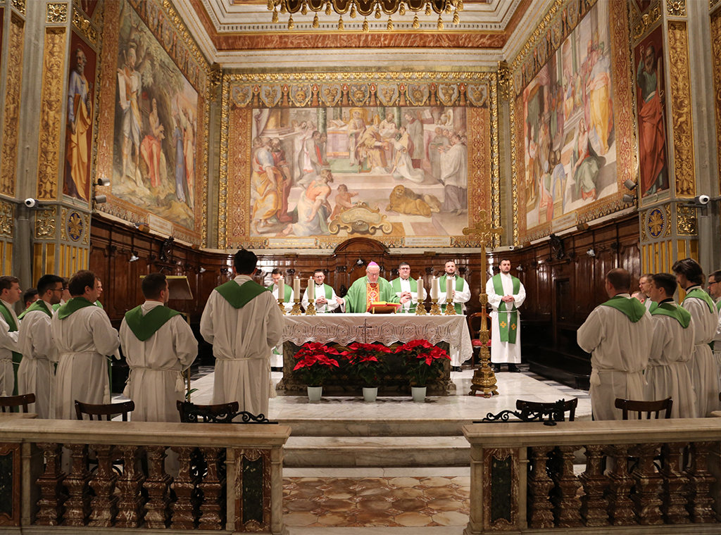 Posljednjeg dana vizitacije, u srijedu 15. siječnja, biskup Rogić predvodio je euharistijsko slavlje u Hrvatskoj crkvi Sv. Jeronima uz koncelebraciju rektora preč. Marka Đurina, vicerektora vlč. Marka Škrabe te svećenika studenata Zavoda. Nakon mise uslijedio je završni zajednički susret u prostorijama Zavoda.