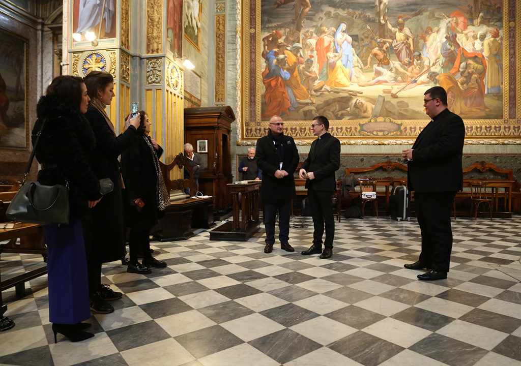 U Papinskom hrvatskom zavodu ministar Grlić Radman susreo se s rektorom velečasnim Markom Đurinom, koji ga je upoznao s radom hrvatskog Zavoda te prikazao povijesnu važnost i vrijednost kako crkve tako i institucije Zavoda za cijeli hrvatski narod i sve hrvatske hodočasnike u Rimu. Također, dobrodošlicu mu je izrazio i bivši rektor Zavoda, biskup varaždinski mons. Bože Radoš te studenti koji djeluju i borave u Zavodu.