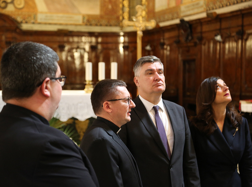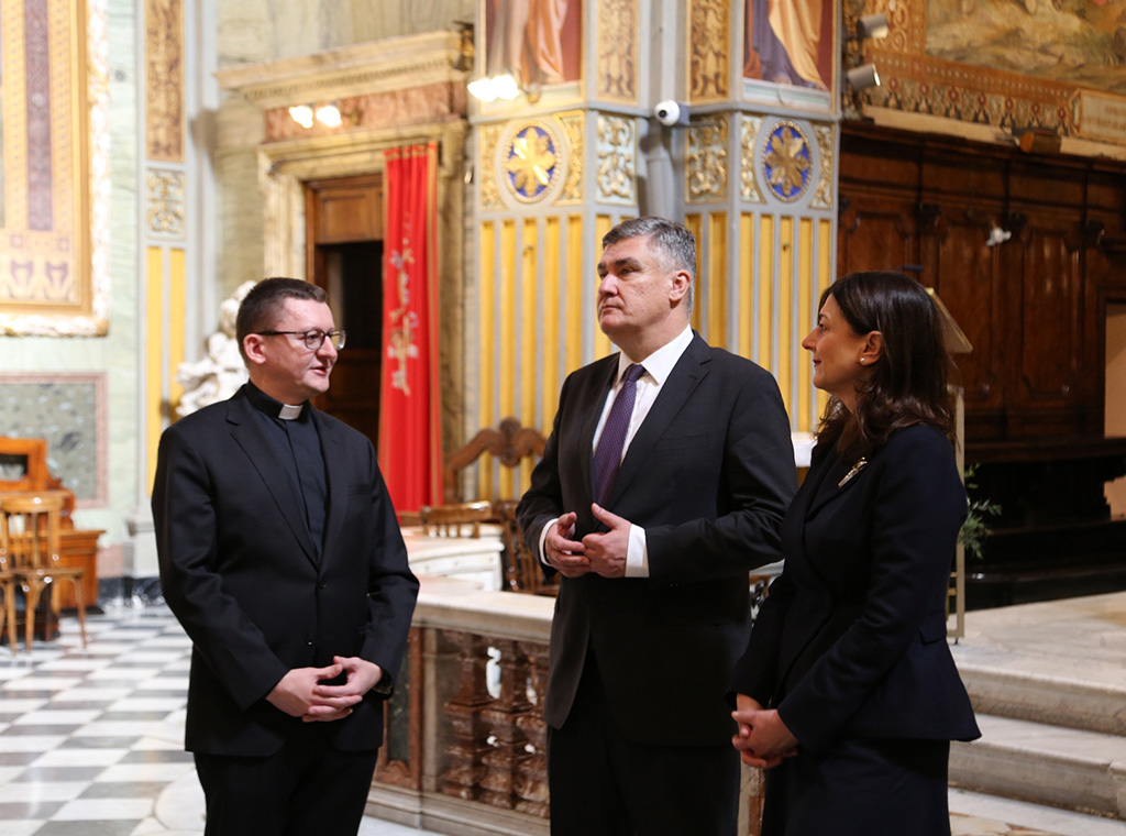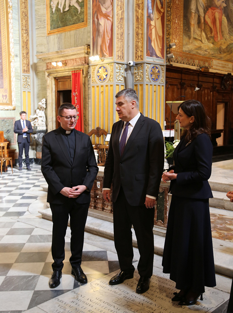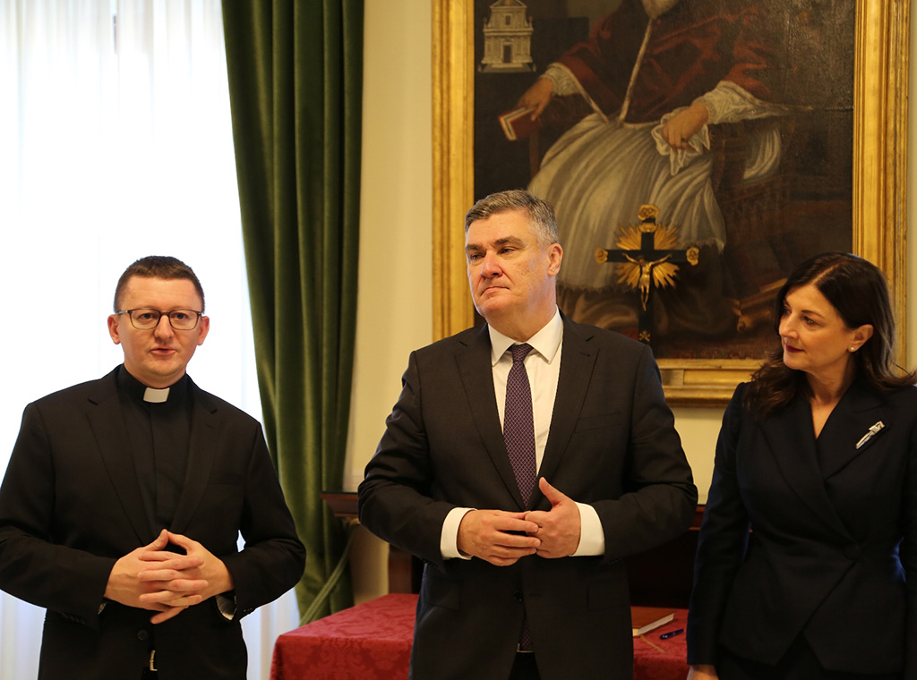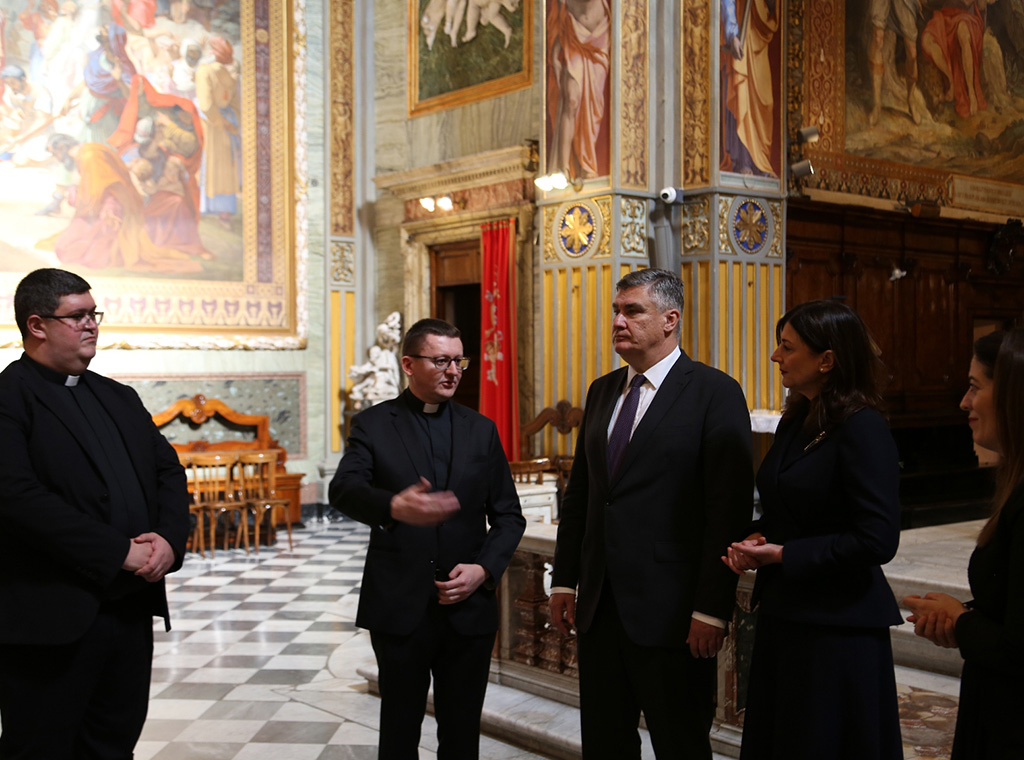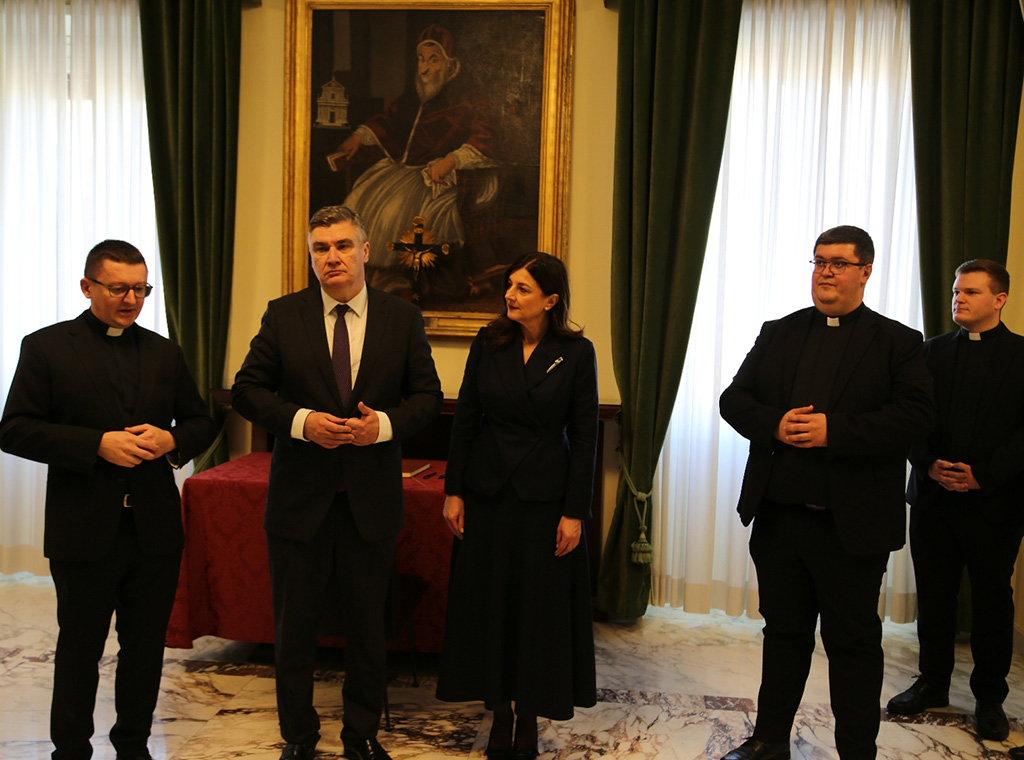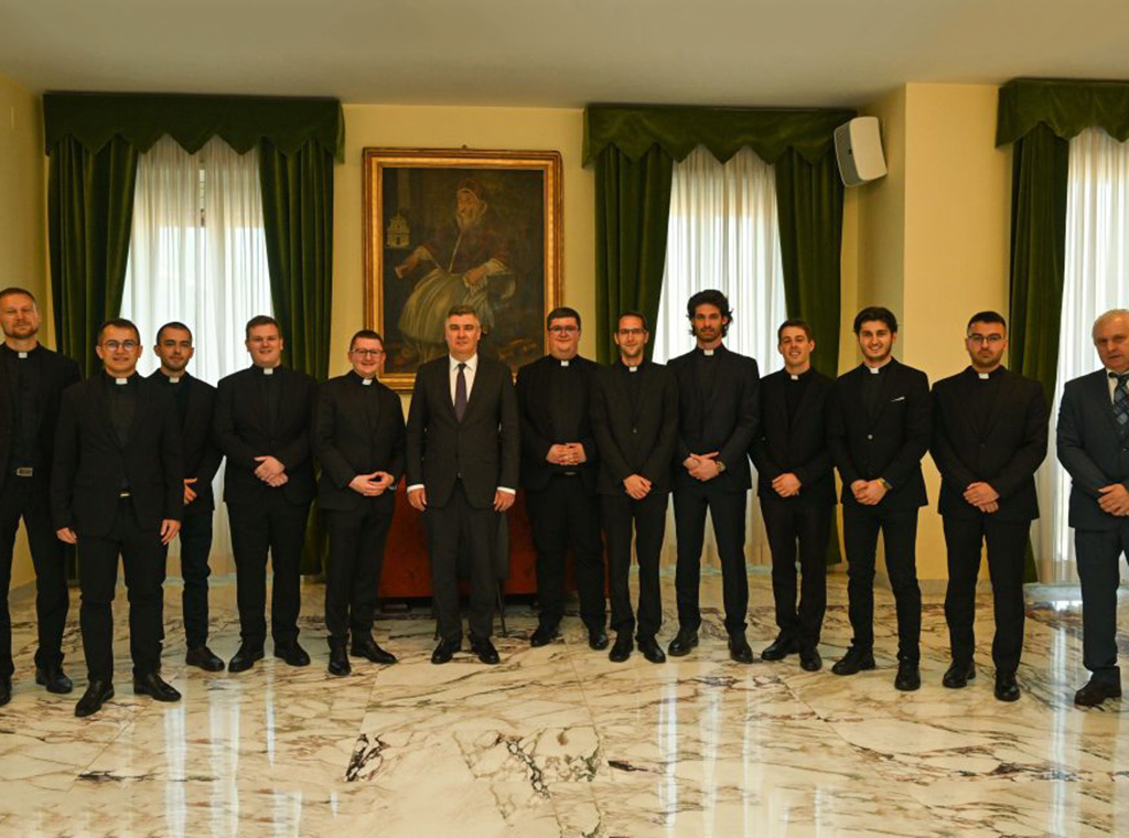 U pratnji supruge Sanje Musić Milanović i članova delegacije hrvatski se predsjednik susreo s upravom Zavoda i svećenicima studentima.