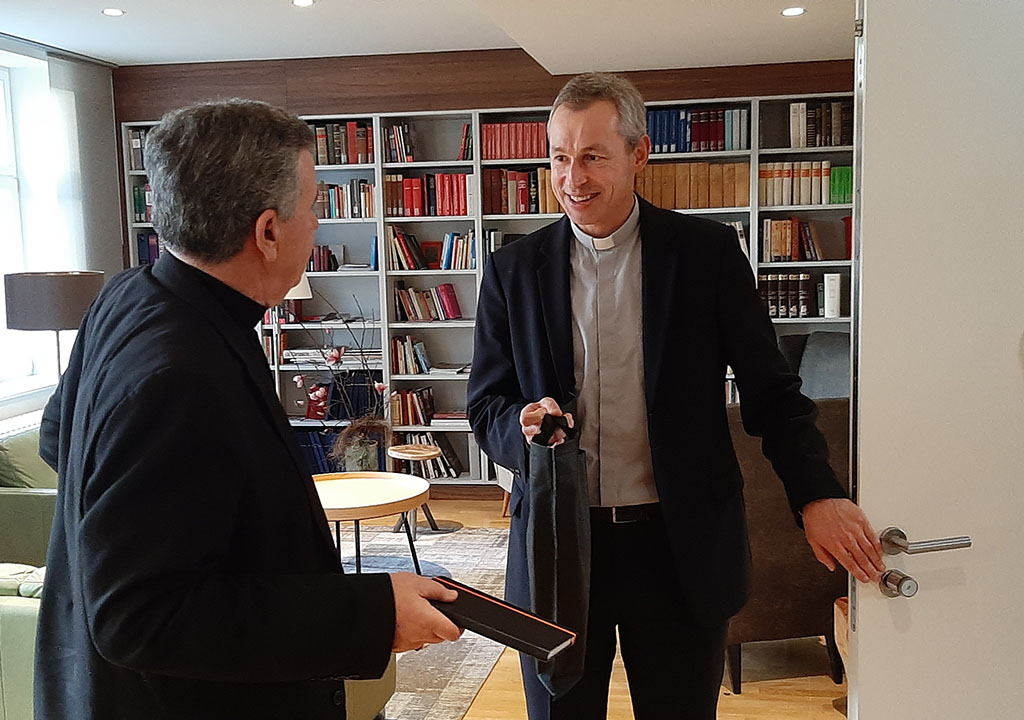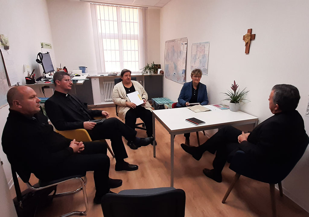Nakon svete mise, uslijedio je susret s Magdom Kaczmarek i Vedranom Perković, administrativnom asistenticom Odjela za pomoć Istočnoj Europi. Razgovaralo se o dosadašnjoj suradnji koja uspješno traje gotovo tri desetljeća i o nastavku iste u raznim područjima, kako u onima koja su prioritet pomoći koju pruža Kirche in Not, tako i u onima koja su prioritet pastoralnog i evangelizacijsko-misionarskog djelovanja svih ustanova na području nadbiskupije. Naglašen je stav da svi projekti, uz obvezno odobrenje nadbiskupa, ubuduće imaju pozitivno mišljenje i preporuku drugih nadležnih nadbiskupijskih tijela, što će olakšati donošenje odluke o pomoći i, s druge strane, pospješiti cjelokupnu komunikaciju o projektima, bilo u njihovoj početnoj fazi, bilo po uspješnom završetku. Na kraju je izražena nada da će budući susreti još više doprinijeti zajedničkom traženju odgovora na izazove s kojima se Crkva susreće na opće-crkvenoj i mjesnoj razini.