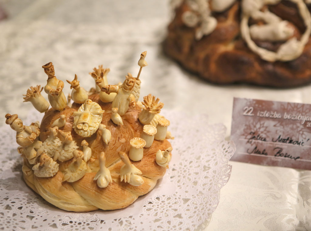 Izložbu je otvorio vlč. Julije Bašić, župnik župe Uznesenja Blažene Djevice Marije na Bikovu pokraj Subotice. Vlč. Julije Bašić u svome obraćanju kazao je: „Božićni kruh, odnosno kolač, i ubuduće treba biti svjedočanstvo naše žive vjere u Boga i ljubavi prema tradiciji bačkih bunjevačkih Hrvata, budući da ga je prema mom skromnom znanju i sjećanju još iz najranijeg djetinjstva, stvorila vjera i ljubav vrijednih, ali iznad svega jednostavnih te iskreno poniznih domaćica. Dok o njegovoj posebnosti i ljepoti slobodno mogu reći da je on, tj. božićnjak, radosno klicanje Bogu koga prepoznaje sva priroda, kako mi je to u ono vrijeme rado govorila majka Marija i isti nam, poput najboljeg pripovjedača, govori tihu i veselu, svetu božićnu radosnu vijest.