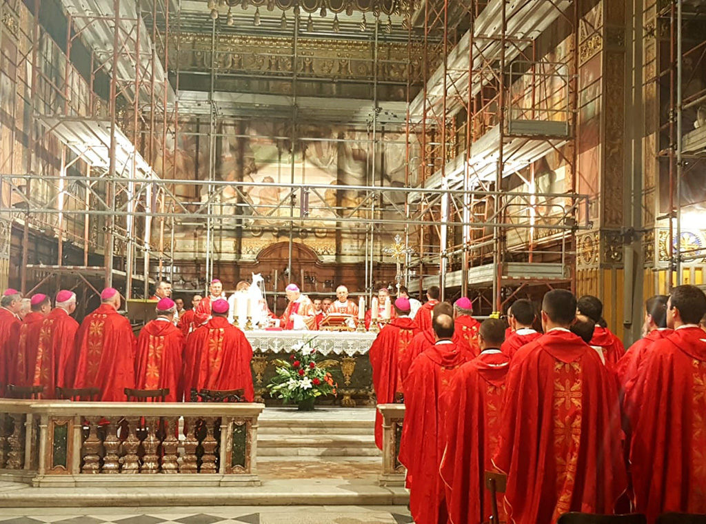 Susret je započeo misnim slavljem u crkvi Sv. Jeronima u središtu Vječnoga grada koje je u zajedništvu sa svim biskupima ordinarijima u Hrvatskoj predslavio riječki nadbiskup metropolita mons. Ivan Devčić, a prigodnu propovijed uputio je šibenski biskup mons. Tomislav Rogić. Ujedno je time i započeo pohod Ad limina hrvatskih biskupa. Uz njih koncelebrirao je i 40-ak svećenika iz Hrvatske i Bosne i Hercegovine od kojih se većina nalazi na postdiplomskom studiju.