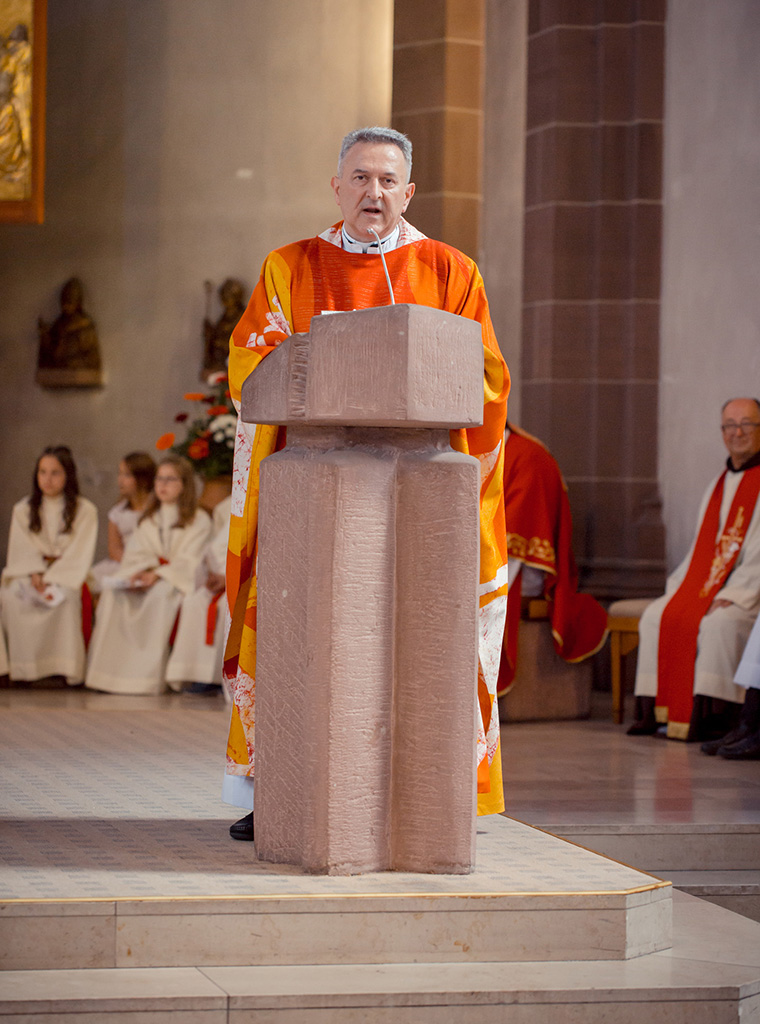 Trećeg dana svoga pohoda ovoj Hrvatskoj katoličkoj misiji, u nedjelju 16. lipnja nadbiskup Vinko predslavio je nedjeljno euharistijsko slavlje u župi Sv. Josipa u Mosbachu kojim je proslavljena svetkovina Presvetog Trojstva te tom prigodom krizmao 19 kandidata. I na ovom slavlju predsjedatelja je pozdravio voditelj Misije vlč. Ružić, a suslavio je na misi i fra Ivo Živković iz Tolise, dok su svi krizmanici svoje aktivno sudjelovanje izrazili čitanjem liturgijskih tekstova, molitvama i recitacijama.