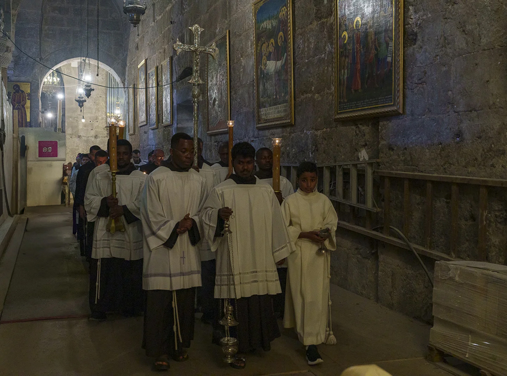 Kardinal je potom predvodio prvu večernju svetkovine, slavljenu ispred Edikule groba zajedno s malim brojem prisutnih redovnika.