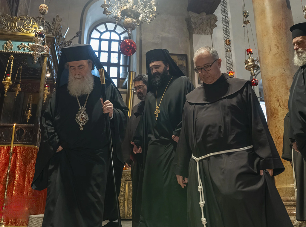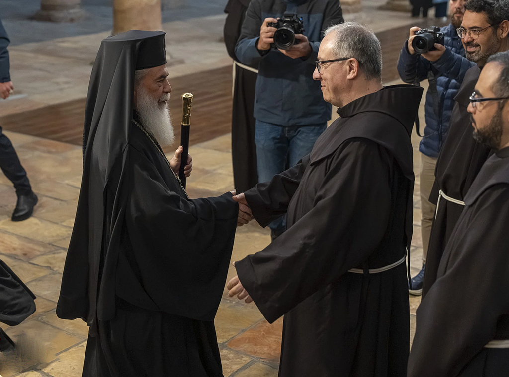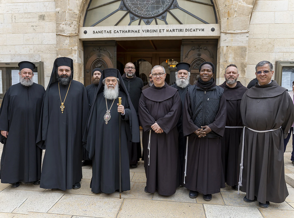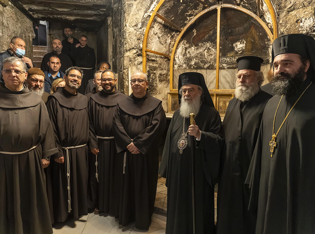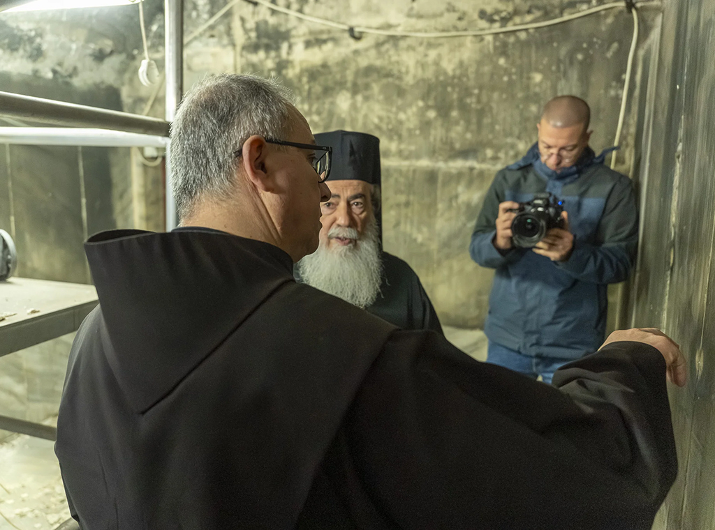 Kustos Svete zemlje fra Francesco Ielpo, OFM i grčki pravoslavni patrijarh Theophilos III. posjetili su, 17. veljače, špilju Rođenja Isusova i razgledali radove na obnovi lokaliteta kojega kršćanska tradicija drži mjestom Isusova rođenja.