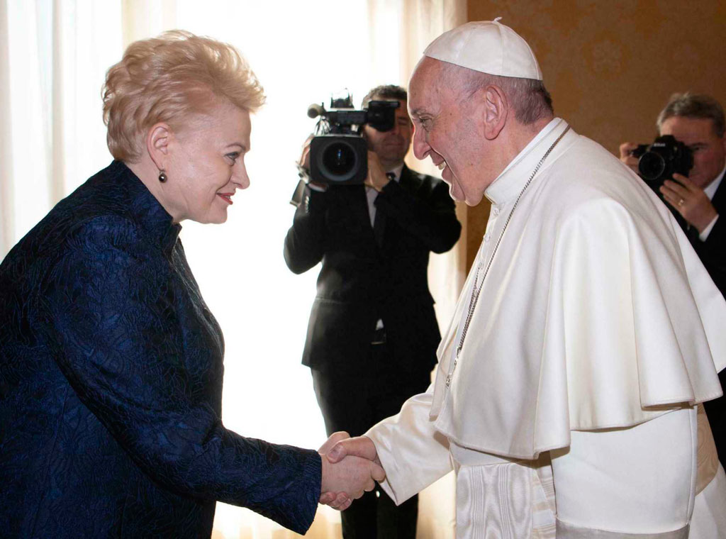 Papa Franjo posjetio je predsjednicu Grybauskaite u rujnu 2018. u sklopu pohoda baltičkim zemljama: Litvi, Latviji i Estoniji. Nakon privatne polusatne audijencije u Vatikanu, prva litavska predsjednica susrela se i s Papinim državnim tajnikom kard. Pietrom Parolinom i tajnikom za odnose s državama nadbiskupom Paulom Richardom Gallagherom. Bilo je riječi i o nužnosti snaženja solidarnosti kako bi se moglo suočiti s izazovima u Europi i regiji.