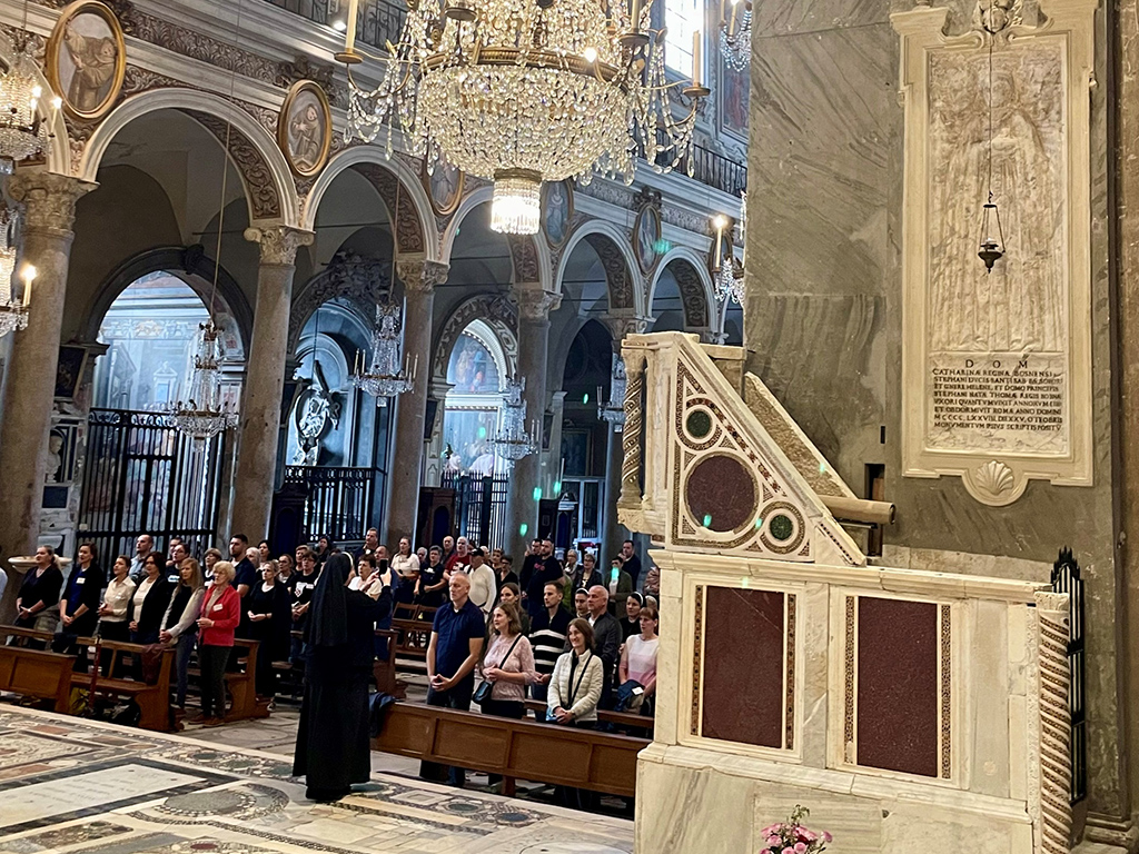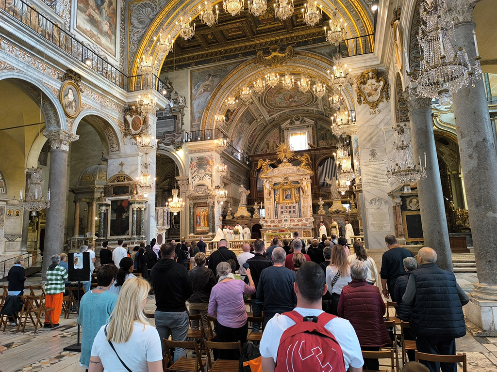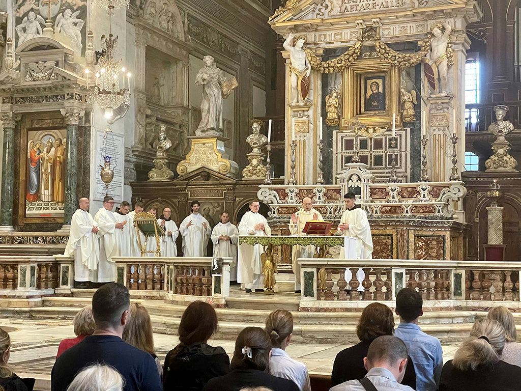 Euharistiju je slavio rektor međunarodnog Zavoda Antonianum fra Miljenko Šteko u koncelebraciji rektora Papinskog hrvatskog zavoda Sv. Jeronima u Rimu preč. Marka Đurina i vicerektora vlč. Marka Škrabe te još osmorice hrvatskih svećenika.