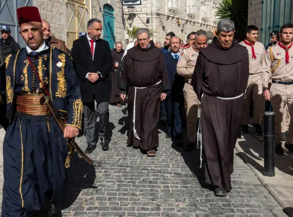 Ovo je obično događaj u kojemu sudjeluje mnoštvo vjernika, ali ovaj put su izostali hodočasnici, kao i svečani ulazak koji je upriličen 5. siječnja ujutro. Drugi put u mjesec dana kustos Svete zemlje našao se u hodu pustim ulicama. Lokalni kršćani potpuno su bojkotirali „ulične“ događaje u spomen na blagdan usred rata Izraela i Hamasa.