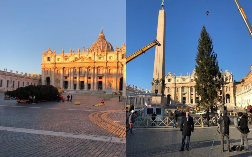 Na Trgu Sv. Petra u Vatikanu postavljena je u ponedjeljak 30. studenoga 28 metara visoka smreka koja je nakon tri dana stigla iz slovenskoga Kočevja.
