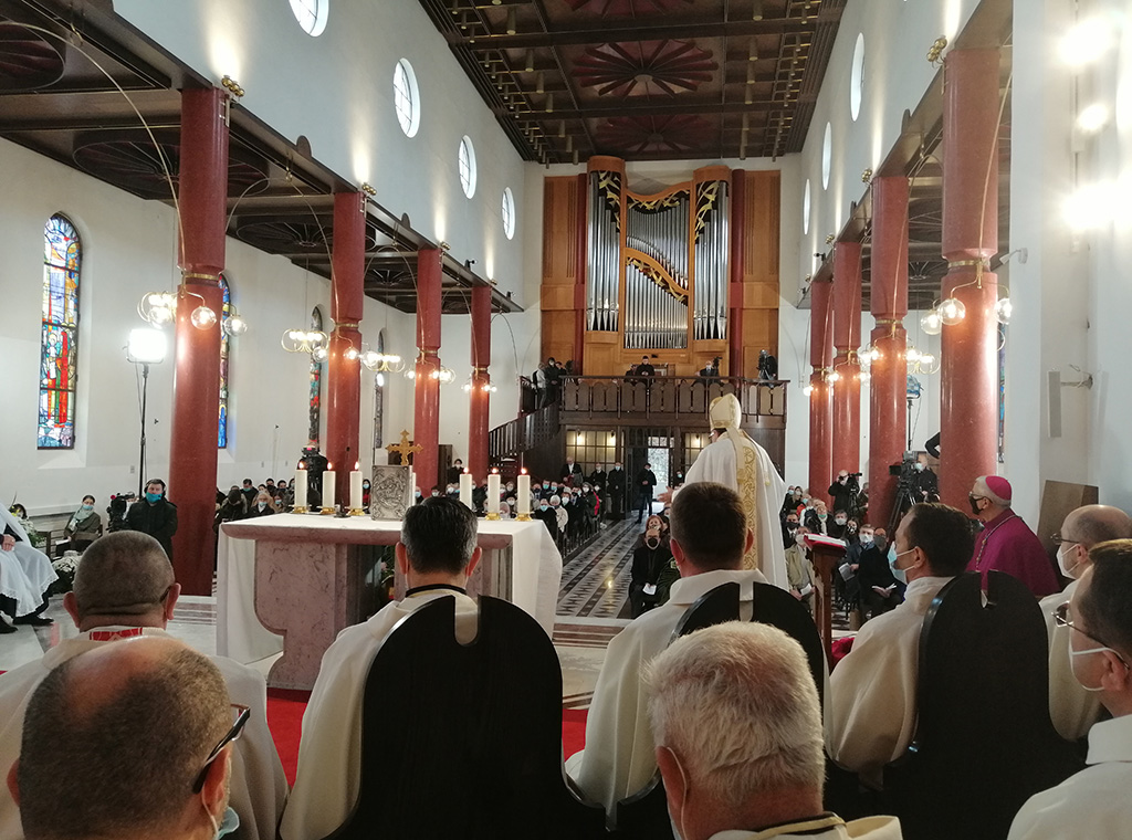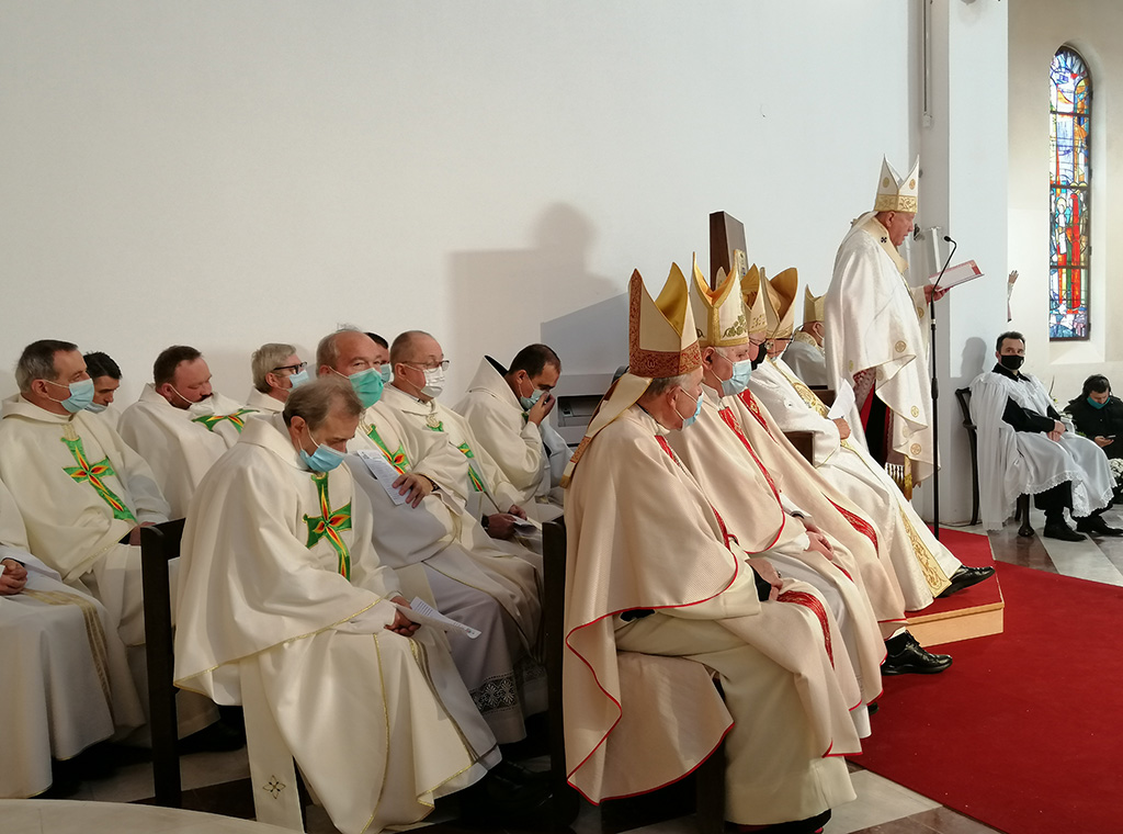 Uz svečara u koncelebraciji su bili: vrhbosanski nadbiskup metropolit Vinko kard. Puljić, koji je i uputio prigodnu propovijed, biskupi iz Međunarodne biskupske konferencije Sv. Ćirila i Metoda na čelu s predsjednikom i zrenjaninskim biskupom mons. Vladislavom Nemetom, apostolski nuncij u Srbiji mons. Luciano Suriani, dubrovački biskup i novoimenovani riječki nadbiskup koadjutor mons. Mate Uzinić, te još 40-ak svećenika.
