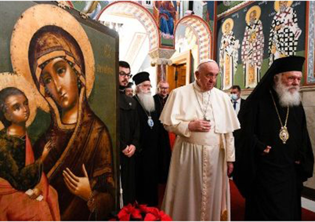 Papa se u poslijepodnevnim satima prvoga dana boravka, 4. prosinca u Grčkoj susreo s Njegovim Blaženstvom Hieronymusom II., nadbiskupom Atene i cijele Grčke, primasom Grčke pravoslavne Crkve.