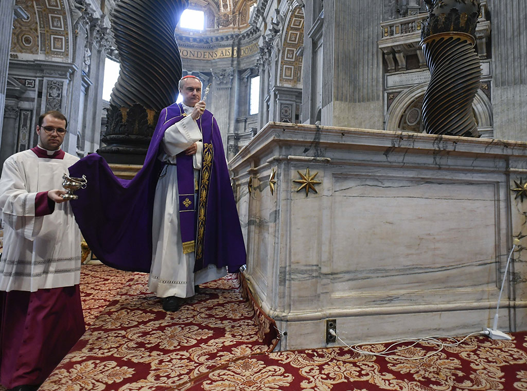 Kardinal Mauro Gambetti, nadsvećenik bazilike, predvodio je pokornički obred, održan u subotu u podne po rimskom vremenu. Sudjelovali su i kanonici Kaptola Papinske bazilike Sv. Petra i nekoliko vjernika.