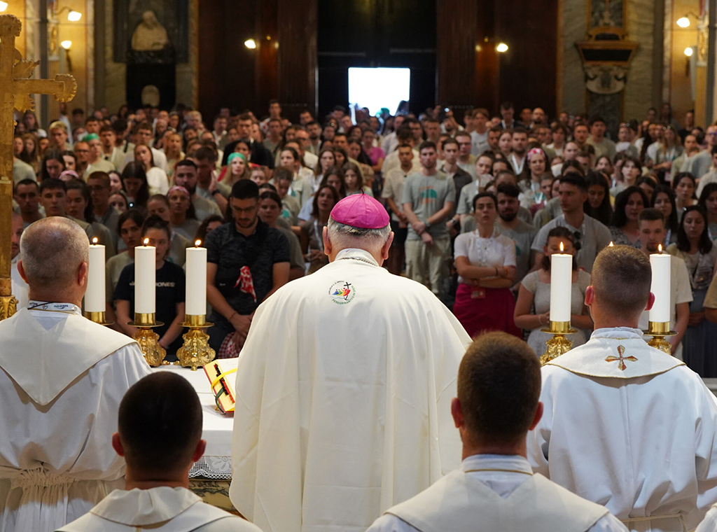Prva kateheza i euharistijsko slavlje za Hrvate koji sudjeluju na Jubileju mladih, održani su u srijedu 30. srpnja u Hrvatskoj crkvi Sv. Jeronima u Rimu.