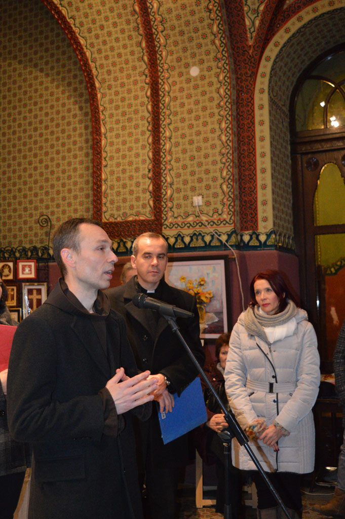 Izložbu je otvorio fra Zdenko Gruber, gvardijan Franjevačkog samostana u Subotici, ovogodišnjeg dobitnika jednog od nagrada Društva „Ivan Antunović“. Fra Zdenko Gruber poručio je nazočnima kako je advent vrijeme kada su vjernici pozvani ići ka Gospodinu koji im dolazi u susret, na svetoj misi, ali i u prilikama svakodnevnoga života i ljudima s kojima dijele ovaj život. "Isus je na salašu – u našoj svakodnevici – u svakodnevici ljudi ovoga kraja – i Isus dolazi u našu svakodnevicu blagosloviti nas i donijeti nam radost, radost Božića, radost Boga-s-nama! Važna poruka božićnjaka i Božića jest da Bog želi okupiti obitelji u zajedništvu. Prihvaćanje drugih koji nam dolaze u susret donosi duboku radost",kazao je fra Zdenko u svome obraćanju te poželio nazočnima sretan i blagoslovljen advent i blagoslovljen Božić, blagdan Božje radosti i blizine.