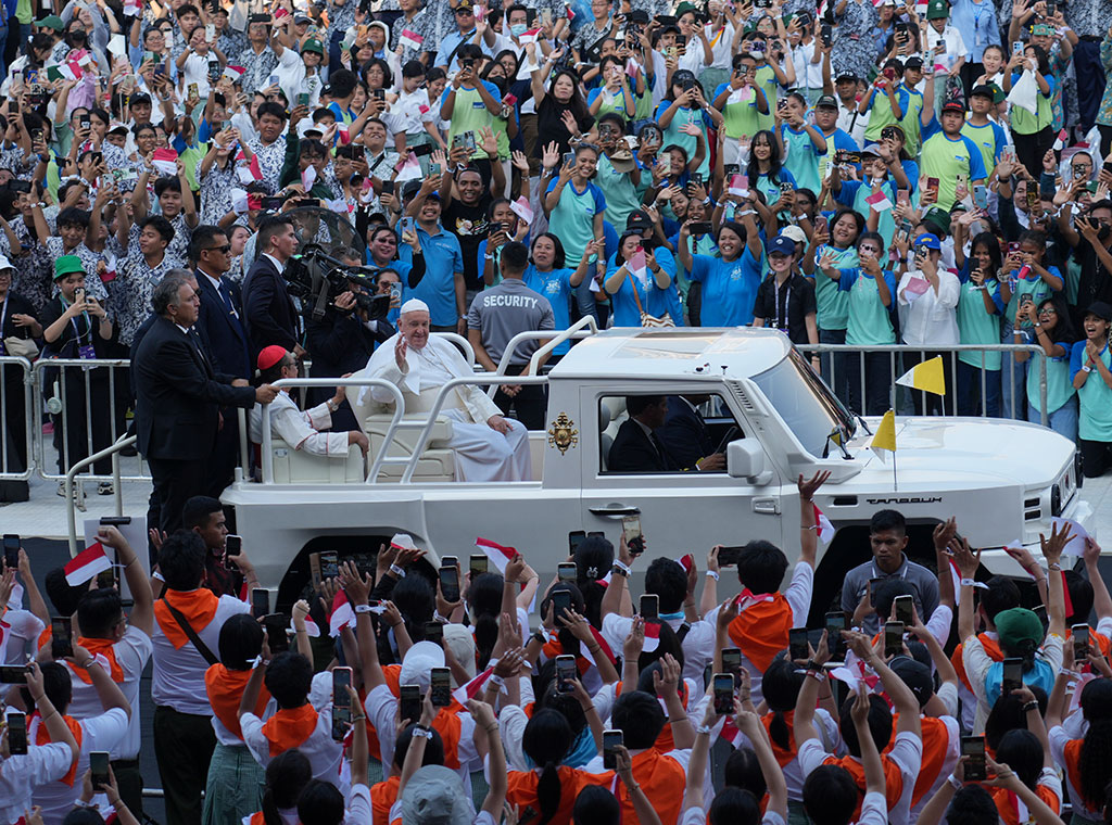 Stoga je potaknuo indonezijski narod da snagom koja dolazi iz Riječi i koja preobražava srce izvrši veliku i važnu zadaću: „Nemojte se umoriti sanjati i graditi civilizaciju mira! Usuđujte se sanjati o bratstvu koje je pravo blago među vama! Potičem vas da po Riječi Gospodinovoj sijete ljubav, da s pouzdanjem slijedite put dijaloga, da i dalje prakticirate svoju dobrotu i ljubaznost s tipičnim osmijehom kojim se odlikujete. Jesu li vam rekli da ste nasmijan narod? Nemojte izgubiti osmijeh, molim vas, i nastavite tako dalje! I budite graditelji nade.”