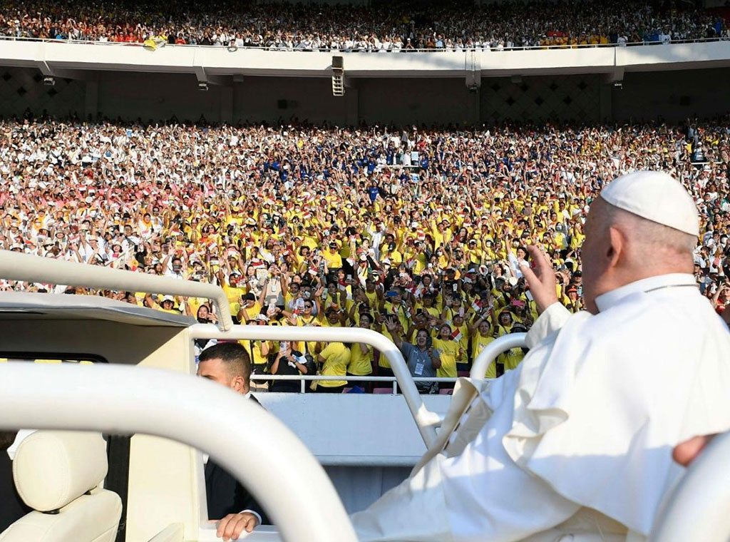 Na oltaru kojim je dominiralo veliko bijelo raspelo, Papa je slavio euharistiju na glavnom stadionu u Jakarti, najvećem u zemlji i koji se može pohvaliti rekordom jer je najosvjetljeniji na svijetu.