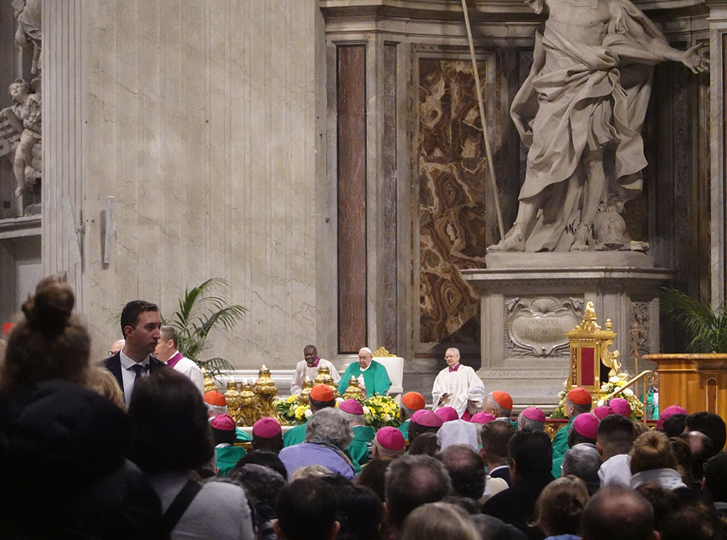 Središnja lađa Bazilike Sv. Petra bila je potpuno ispunjena medijskim djelatnicima iz cijeloga svijeta koji su se okupili na prvom velikom događaju Jubileja 2025. – Jubileju svijeta komunikacija.