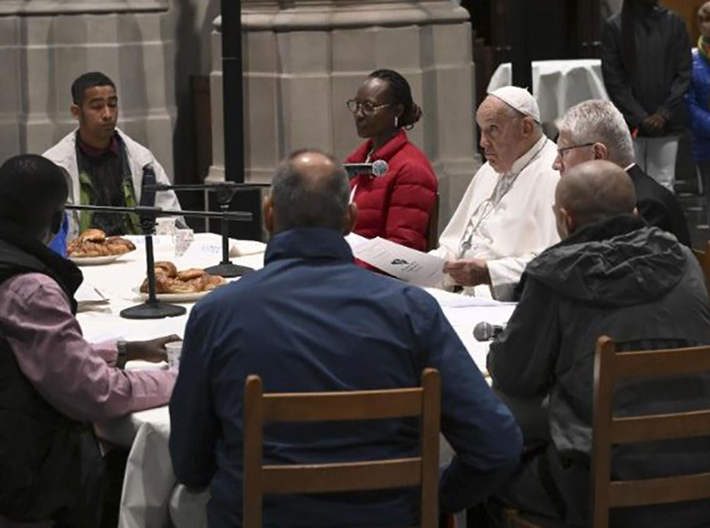 Prije odlaska u baziliku Presvetog Srca, odvojio je vrijeme za doručak sa skupinom siromašnih izbjeglica u lokalnoj crkvi Saint-Gilles, koja im pruža pomoć.