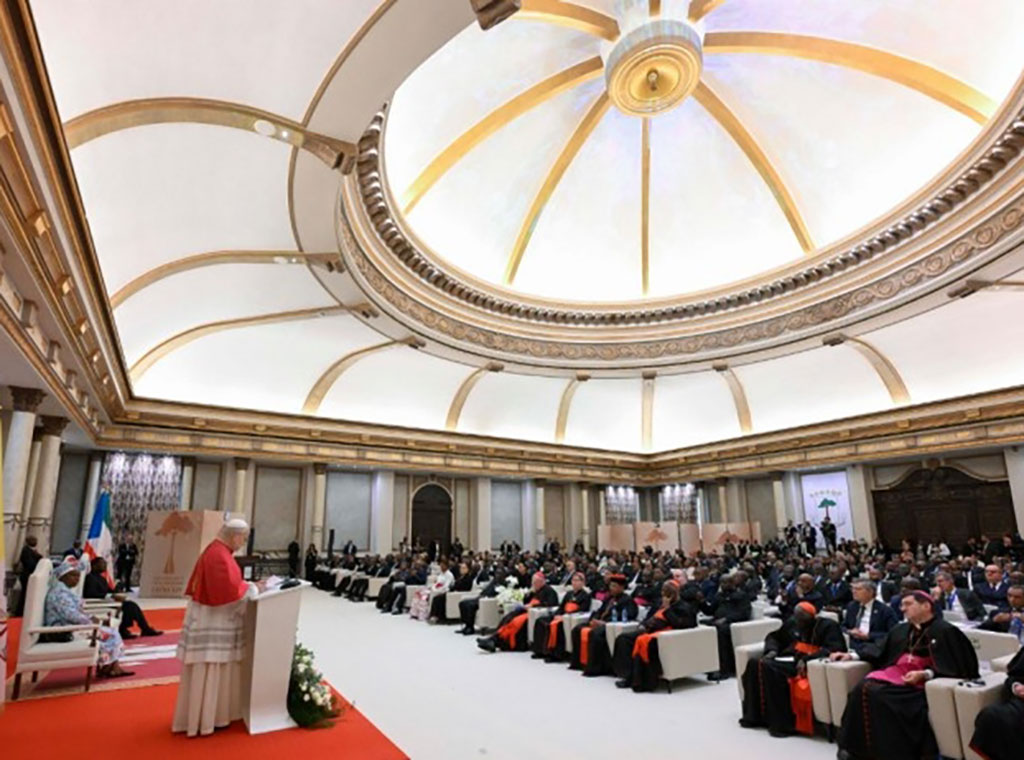 Ističući važnost 90 % katolika u Ekvatorskoj Gvineji za kršćanstvo u središnjoj Africi, Rimski je biskup upozorio na instrumentalizaciju vjere u destruktivne svrhe. „Vjera utjelovljena u Kristu uzdiže mir i bratstvo, izgradnju čovječanstva u njegovoj najplemenitijoj i najsvetijoj vrijednosti. Njegovo sveto Ime ne može biti oskvrnuto voljom za dominacijom, oholosti i diskriminacijom, a osobito se nikada ne smije zazivati kako bi se opravdale odluke i djela smrti“, istaknuo je Papa zaključno pozivajući „neka vaša zemlja ne oklijeva provjeriti svoje razvojne procese i pozitivne mogućnosti da se smjesti na međunarodnoj sceni u službi prava i pravednosti“.