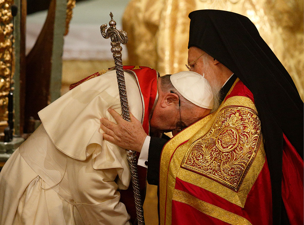 „Doista, njegove riječi ostaju relevantne i danas: 'Kad je nekolicina Crkava nadahnuta ljubavlju i stavi je ispred svega u svojoj prosudbi o drugima i u međusobnom odnosu, moći će, umjesto da povećavaju i proširuju postojeća neslaganja, smanjiti i umanjiti koliko je više moguće; i promicanjem stalnog bratskog zanimanja za stanje, stabilnost i napredak drugih Crkava, njihovom željom za promatranje onoga što se u tim Crkvama događa, i stjecanjem podrobnijeg znanja o njima i njihovom spremnošću da pruže, kad god se ukaže prilika, ruku pomoći i podršku, oni će tada učiniti i postići mnogo dobrih stvari na slavu i dobit kako sebi tako i čitavom kršćanskom tijelu i napretku u glede jedinstva'“, citirao je Papa te konstatirajući da se vidi poboljšanje odnosa između Katoličke Crkve i Ekumenskog patrijarhata, premda zaprjeke jedinstvu ostaju. Izrazio je uvjerenje kako se i to može teološkim dijalogom nadići. „Ta se nada temelji na našoj zajedničkoj vjeri u Isusa Krista, kojega je Bog Otac poslao da okupi sve ljude u jedno tijelo, i koji je zaglavni kamen jedne i svete Crkve, Božjeg svetog hrama, u kojem smo svi živo kamenje, svaki prema vlastitoj karizmi ili službi koju daje Duh Sveti“, poručio je papa Franjo.