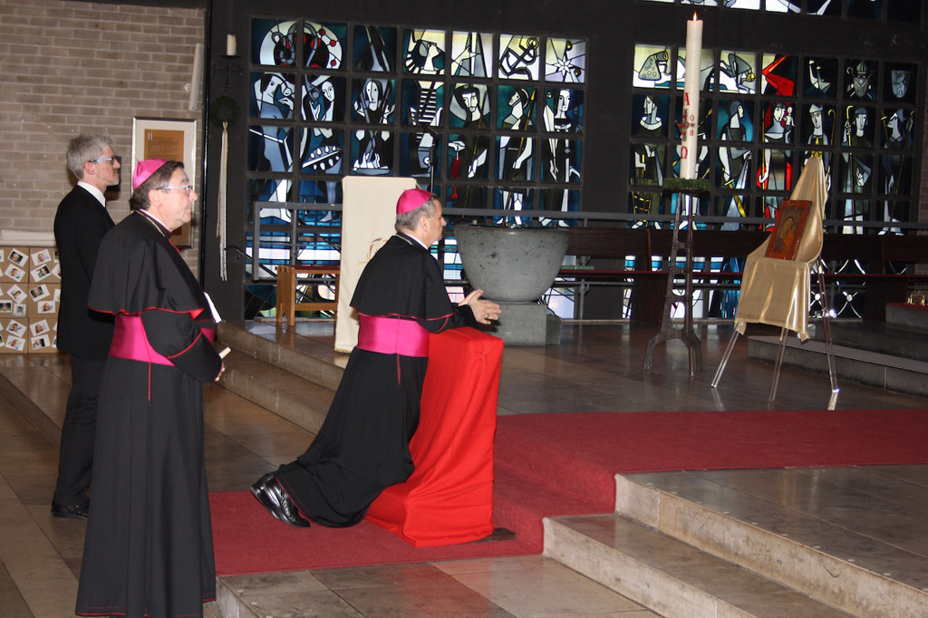 Dan ranije, u subotu 26. svibnja, mons. Eterović je pohodio zahvalnu crkvu povratnika iz zatočeništva iz Drugoga svjetskog rata u Bochum-Weitmar, koja je ujedno i spomenik mira i pomirenja. Nuncija mons. Eterovića je u pratnji pomoćnog biskupa biskupije Essen mons. Wilhelma Zimmermana, dekana Bochuma i župnika Michaela Kempera i drugih uzvanika, pred crkvom je svečano dočekao župnik Thomas Köster. Mons. Eterović je pred crkvom blagoslovio klerike i vjernike. Potom se išlo u crkvu, gdje se ispred oltara zadržao u molitvi pred replikom ikone Majke Božje od Kasana. Nakon pozdravne riječi župnika Köstera, prigodnu riječ uputio je mons. Zimmermann uputivši mons. Eteroviću dobrodošlicu uime biskupa Biskupije Essen mons. Franz-Josefa Overbecka i u svoje osobno ime. Mons. Eterovića je upoznao s nastankom i znamenitostima crkve umirovljeni svećenik Theo Schwens.