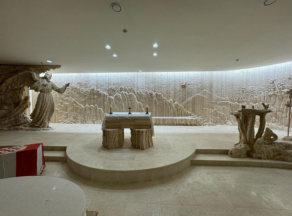 Kapela Sv. Jeronima, Sv. Nikole Tavelića i ostalih hrvatskih svetaca i blaženika čiji je kamen temeljac na Stepinčevo 2020. blagoslovio tadašnji zagrebački nadbiskup kard. Josip Bozanić, uskoro će zasjati u punom sjaju, otkrio je za Katolički tjednik akademski kipar iz Tomislavgrada Ilija Skočibušić, autor unutarnjeg uređenja kapele.