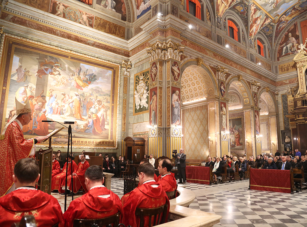 Rektor Đurin napomenuo je kako su svi prefekti Kongregacije za nauk vjere počevši od kardinala Šepera, Ratzingera, Levade i Müllera prigodom obilježavanja spomena mučeničke smrti Alojzija Stepinca upravo u crkvi Sv. Jeronima predvodili euharistijsko slavlje i kako je on peti prefekt u tome nizu.