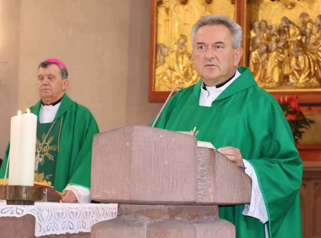 Mons. Vukšić je u uvodnoj riječi uputio čestitku župniku i cijeloj misijskoj zajednici o 50. obljetnici. U propovijedi je podsjetio što Isus želi poručiti po svojim prispodobama u misnim čitanjima toga dana. „Isus odgovarajući na provokativno pitanje, zašto se obraća grešnicima, zašto se s njima druži, odgovara slikom o pastiru koji ima stotinu ovaca, ali mu se jedna negdje zagubila i on ostavlja onih 99 čak u pustinji i ide tražiti onu jednu izgubljenu. Tu je i prispodoba o nađenoj drahmi i radosti koja je nastala kad se je pronašla, kao što je bila i kod onog pastira koji je pronašao izgubljenu ovcu. Tu je i slika o rasipnom sinu. Naglasak je na radosti pastira zbog nalaska izgubljene ovce, radosti one žene zbog nađene drahme, radosti oca zbog ponovno nađenog sina. Isus želi na taj način kazati da se dragi Bog kroz sve te tri prispodobe raduje kad se nađe izgubljena ovca, izgubljena drahma i izgubljeni sin. Nemojmo se i mi naći u napasti da prigovaramo Božjem milosrđu, jer nema čovjeka, pa i onog najsvetijeg na ovome svijetu, koji ipak na neki način u nekoj od životnih situacija sebe ne može prepoznati u izgubljenoj ovci, u izgubljenoj drahmi, u odlutalom sinu ili kćeri na ovaj ili na onaj način", rekao je nadbiskup Vukšić.