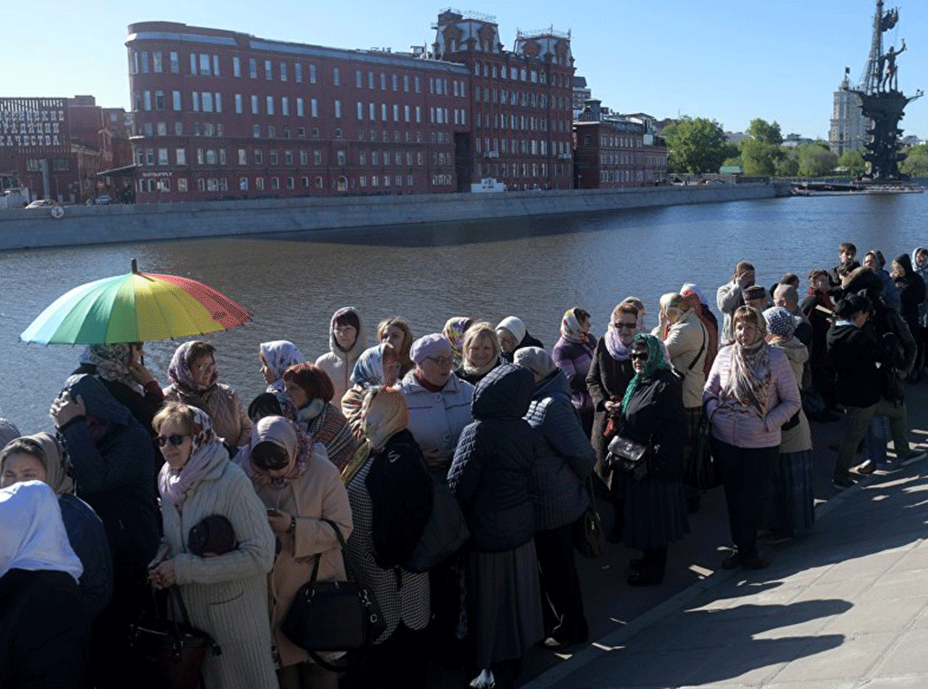 Dugi redovi hodočasnika mogu se stalno vidjeti u ruskom glavnom gradu. Ljudi u nepreglednoj procesiji satima čekaju kako bi mogli iskazati poštovanje relikvijama (lijevo rebro) Sv. Nikole od Barija, u Rusiji poznatijeg kao Sv. Nikola od Myre, ili jednostavno: Sv. Nikola.