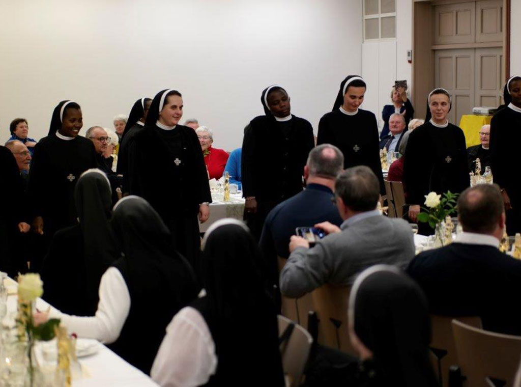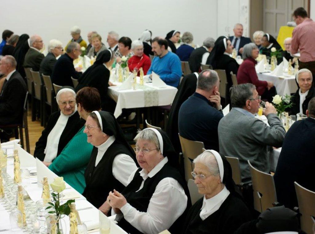 Potom je uslijedilo druženje uzvanika u župnom pastoralnom centru. Okupljenima se na početku obratila časna majka s. Emanuela Nikolić koja je svima zahvalila na dolasku, potpori te na brizi za sestre. Nakon nje kratki povijesni sažetak i prikaz djelovanja sesatar prezentirala je s. Brigita Pavić iz Graza. Večer je upotpunjenja pjesmom, ali i plesom koji su predvodile sestre iz Kenije, a kojima su se pridružile i ostale redovnice.