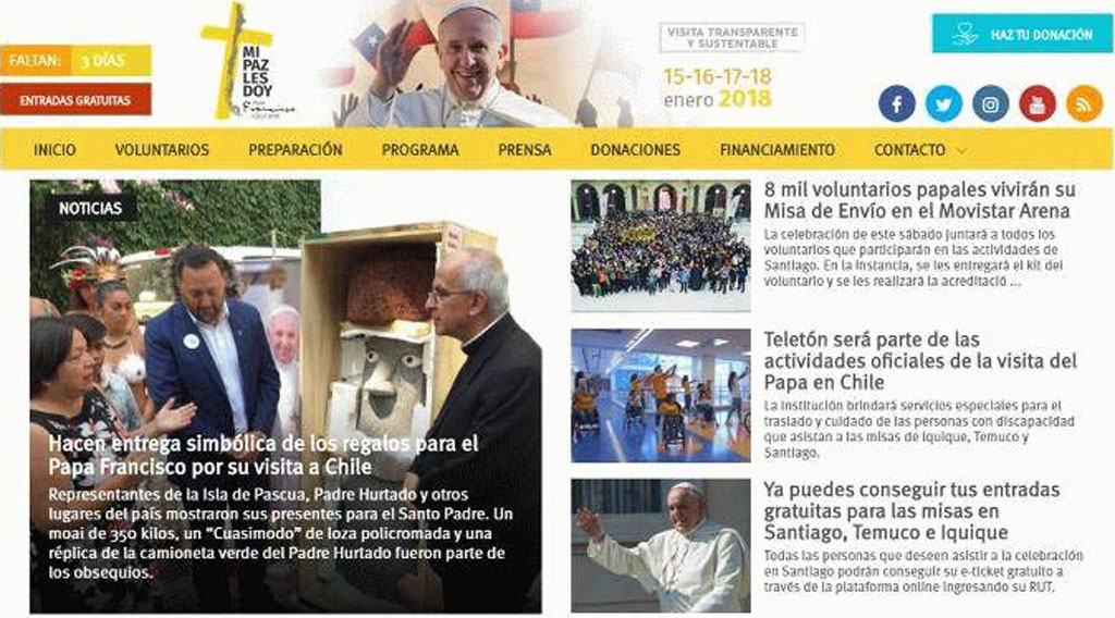 U povodu pastirskog pohoda pape Franje Čileu objavljena je službena mrežna stranica na adresi www.franciscoenchile.cl.