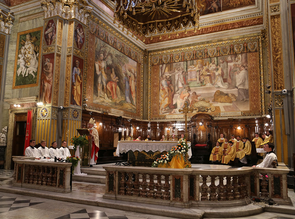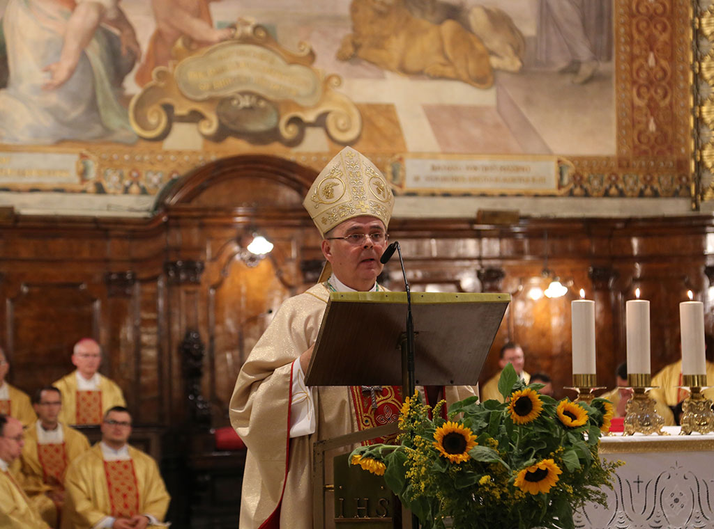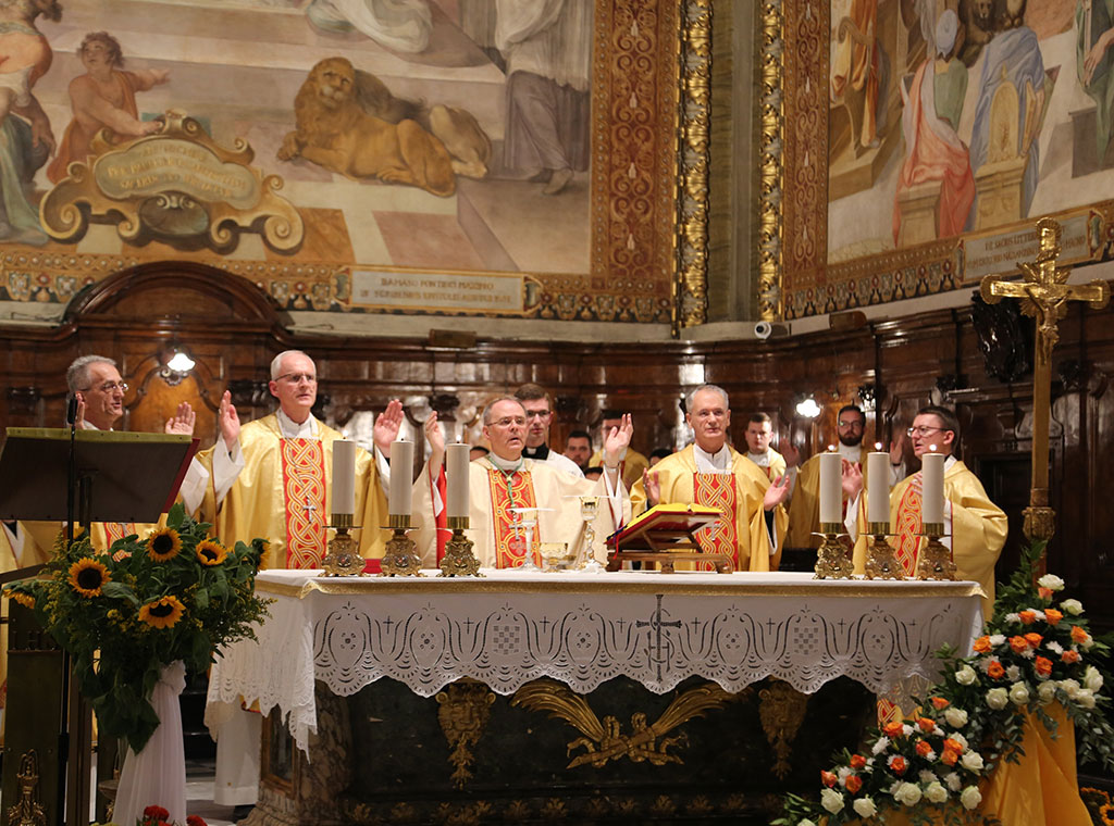 Svečano euharistijsko slavlje predvodio je varaždinski biskup mons. Bože Radoš u zajedništvu s apostolskim nuncijem u Italiji i San Marinu nadbiskupom mons. Petrom Rajićem, zagrebačkim nadbiskupom i predsjednikom Hrvatske biskupske konferencije mons. Draženom Kutlešom, pomoćni biskupom đakovačko-osječkim mons. Ivanom Ćurićem, rektorom Zavoda preč. Markom Đurinom, vicerektor vlč. Markom Škrabom, duhovnikom o. Alanom Modrićem, mons. Hrvojem Škrlcem iz Državnog Tajništva Svete Stolice i 20-ak svećenika na službi ili studiju u Rimu.
