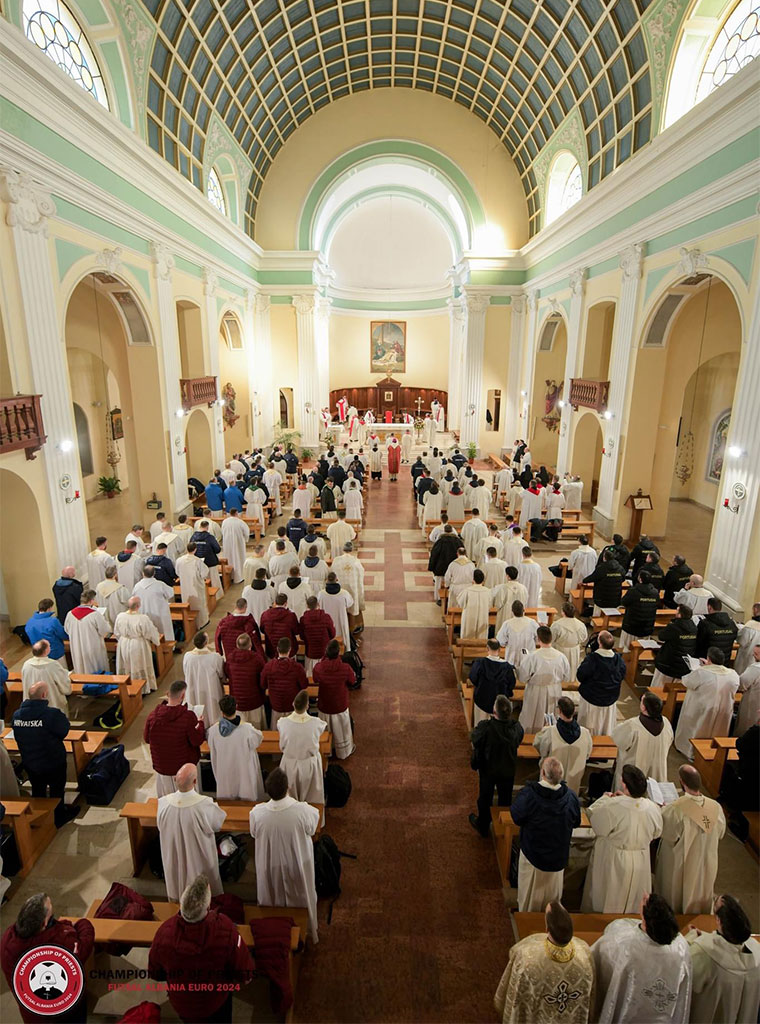 Europsko prvenstvo za svećenike otvoreno u poslijepodnevnim satima u ponedjeljak, 5. veljače kada su se prezbiteri iz 17 zemalja, njih oko 230, okupili u skadarskoj katedrali Sv. Stjepana Prvomučenika na sv. misi koju je predslavio nadbiskup metropolita skadarski mons. Angelo Massafra, OFM.