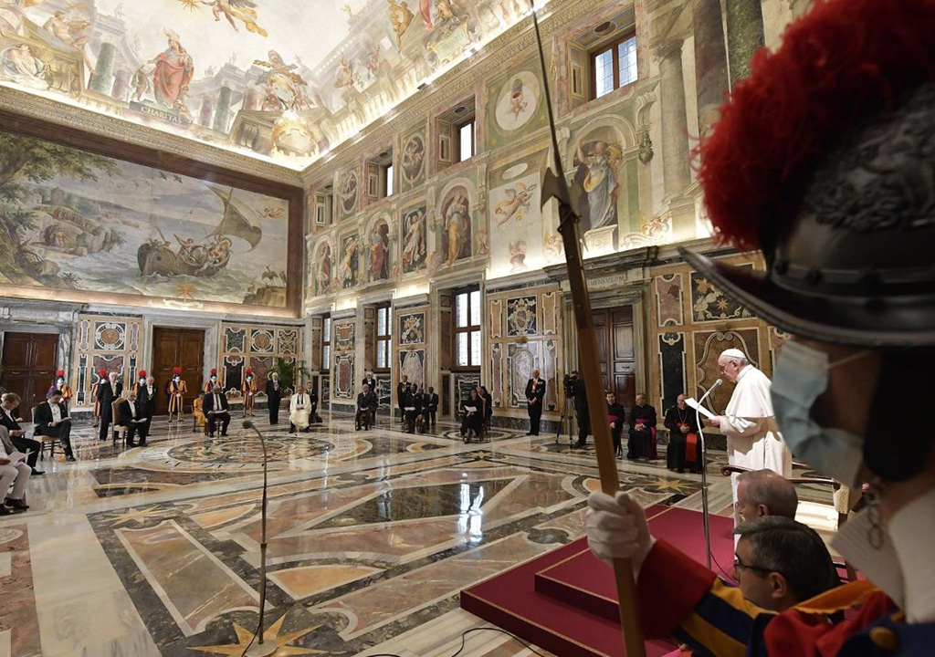 Sveti Otac im je, prenosi Vatican News, u krakom nagovoru zahvalio na dolasku unatoč trenutačnim ograničenjima kretanja u pandemiji koronavirusa. Ponovno je istaknuo da se aktualna kriza može riješiti samo zajedničkim naporima i u kulturi skrbi – čovječanstvo treba nove odnose i strukture koje se temelje na međusobnom pomaganju, solidarnosti, poštovanju ljudskoga dostojanstva i socijalnoj pravednosti.