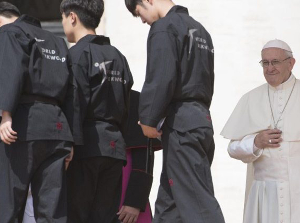 Na općoj audijenciji u srijedu 30. svibnja, skupina mladih iz Južne Koreje predstavila je pred papom Franjom borilačke vještine taekwondoa.