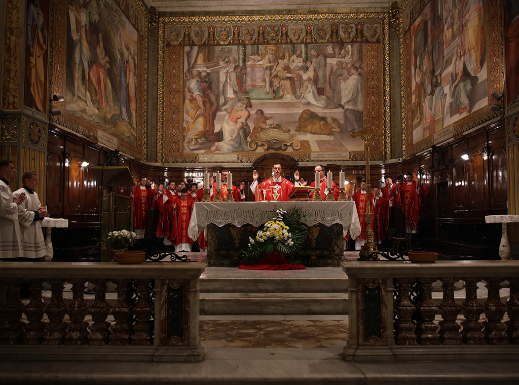 Euharistijsko slavlje u Hrvatskoj crkvi Sv. Jeronima predvodio je o. Stanko Pažin, član Hrvatske karmelske provincije Sv. Oca Josipa i Međunarodnog zavoda Teresianum u Rimu, te doktorand duhovne teologije na Papinskom teološkom fakultetu Teresianum.