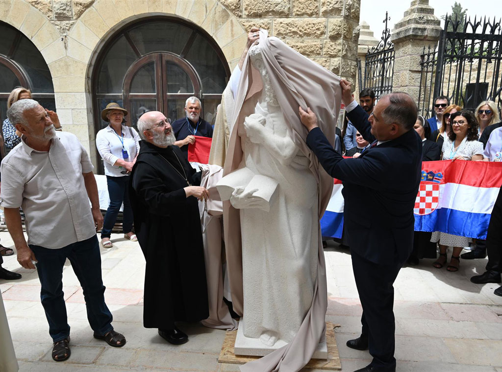 Franjevac konventualac fra Tomislav Glavnik navodi kako je ovaj kip, postavljen na Sionu, znak prepoznavanja hrvatskoga naroda u Izraelu. "Sa Svetom zemljom bili smo uvijek povezani, bilo preko hodočasnika, utjecajnih svećenika ili svetaca poput Sv. Nikole Tavelića. Upravo ovo postavljanje kipa je jedan veliki znak", izjavio je Glavnik. Otkrivanju kipa nazočili su i zamjenik župana Stipe Čogelja, predsjednik Županijske skupštine Mate Šimundić, rektor Sveučilišta u Splitu dr. Dragan Ljutić i hrvatska veleposlanica u Izraelu Vesela Mrđen Korać.