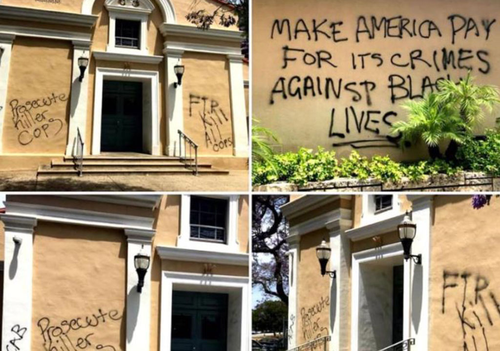 Nadalje, na zgradi Gospe Libanonske – katedrale svetog Petra u Los Angelesu također su osvanule poruke protiv američke policije.