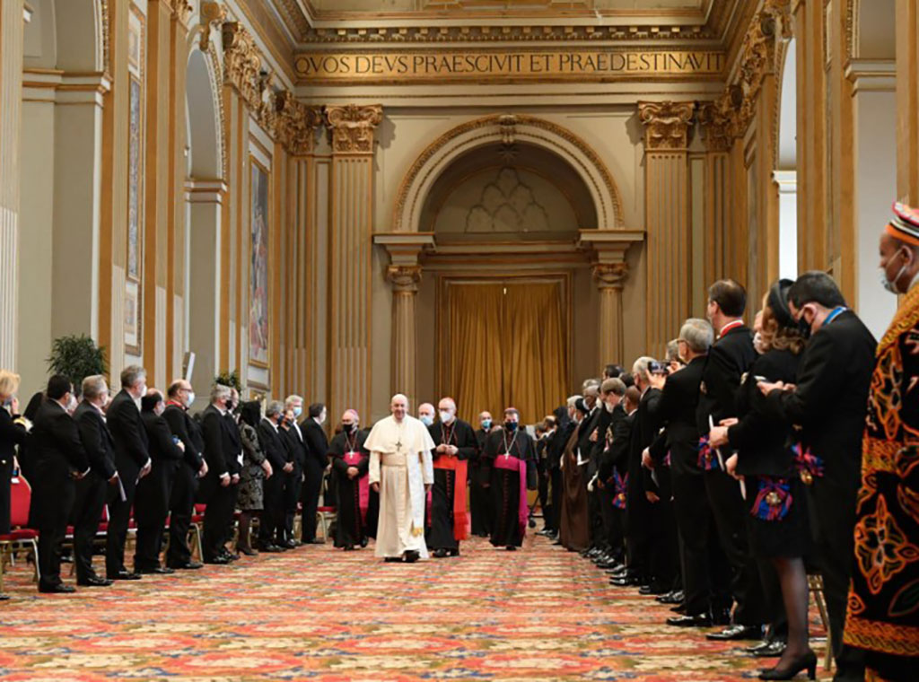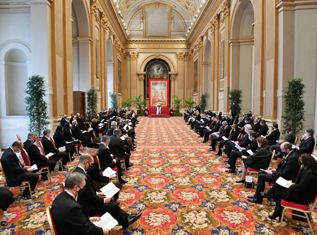 Konstatirajući tu činjenicu Sveti Otac je istaknuo kako ovaj sastanak govori o nečemu sasvim drugačijem, „to je znak bliskosti i međusobne podrške kojoj obitelj naroda treba težiti“. „U ovo vrijeme pandemije potreba za takvom bliskošću je tim važnija, jer je jasno da virus ne poznaje prepreke niti ga je lako izolirati“, rekao je uvodno papa Franjo spomenuvši kako želi nastaviti svoje apostolske pohode diljem svijeta, počevši s onim u Irak planiranim za ožujak 2021. U tom smislu ukazao je na potrebu međureligijskoga dijaloga kao prilike „uzajamnog razumijevanja i obogaćivanja“, te međunarodnih sporazuma koje Sv. Stolica potpisuje s različitim državama.