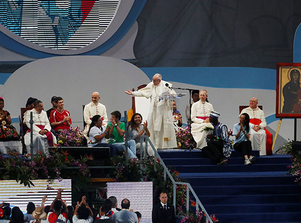 Podsjetio se kako su mu u Krakowu neki postavili pitanje hoće li biti nazočan u Panami, na što je odgovorio „ne znam, ali sigurno će biti Petar“. „Danas sam sretan što vam mogu reći, Petar je s vama da slavite i obnovite vjeru i nadu. Petar i Crkva koračaju s vama i žele vam poručiti da se ne bojite ići naprijed s obnovljenom energijom i stalnom željom koja nam pomaže i ohrabruje da budemo radosni i raspoloživi. Ići naprijed ne da bi stvarali paralelnu Crkvu koja bi bila više 'zabavna' ili cool na nekom događaju za mlade. Takvo razmišljanje bi značilo nedostatak poštovanja prema vama i svemu što Duh kroz vas progovara“, pojasnio je poglavar Katoličke Crkve.