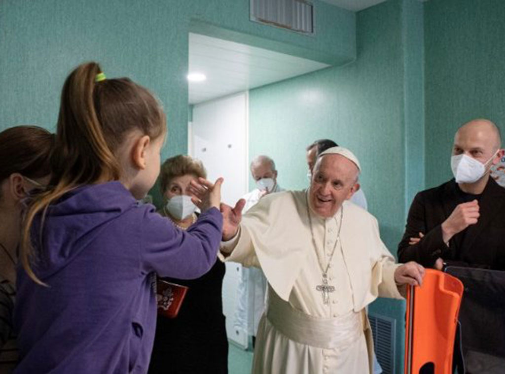 „Ukupno je od početka rata u Ukrajini u bolnicu Bambino Gesù stiglo oko 50 maloljetnika“, Bruni. Riječ je o pacijentima s različitim patologijama (onkološkim, neurološkim i drugim vrstama) koji su pobjegli u prvim danima sukoba, te o djevojčicama s teškim ozljedama od eksplozije koje su stigle kasnije. Papa se zaustavljao u sobama obilazeći sve prisutne mališane, a potom se vratio u Vatikan.