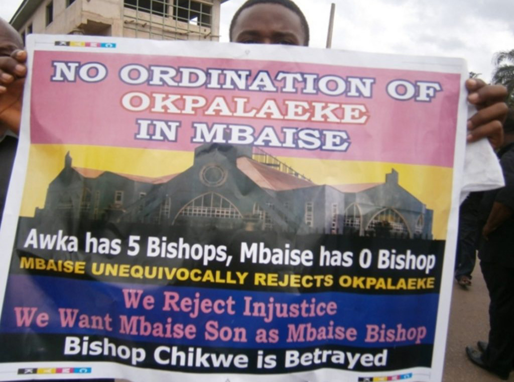Korijen krize koja potresa ovu dijecezu seže u 2012. kada je papa Benedikt XVI. postavio na čelo Crkve u Ahiari biskupa Petera Eberea Okpalekea koji ne pripada lokalnom kleru nego je "došao" iz druge biskupije. To je bio razlog što ga do danas znatan broj njih ne priznaje. No, situacija je kompleksna: na jednoj su strani svećenici i laici koji ga odbijaju prihvatiti, a na drugoj mnogi ga podupiru. Zbog toga je morao intervenirati i Sveti Otac.
