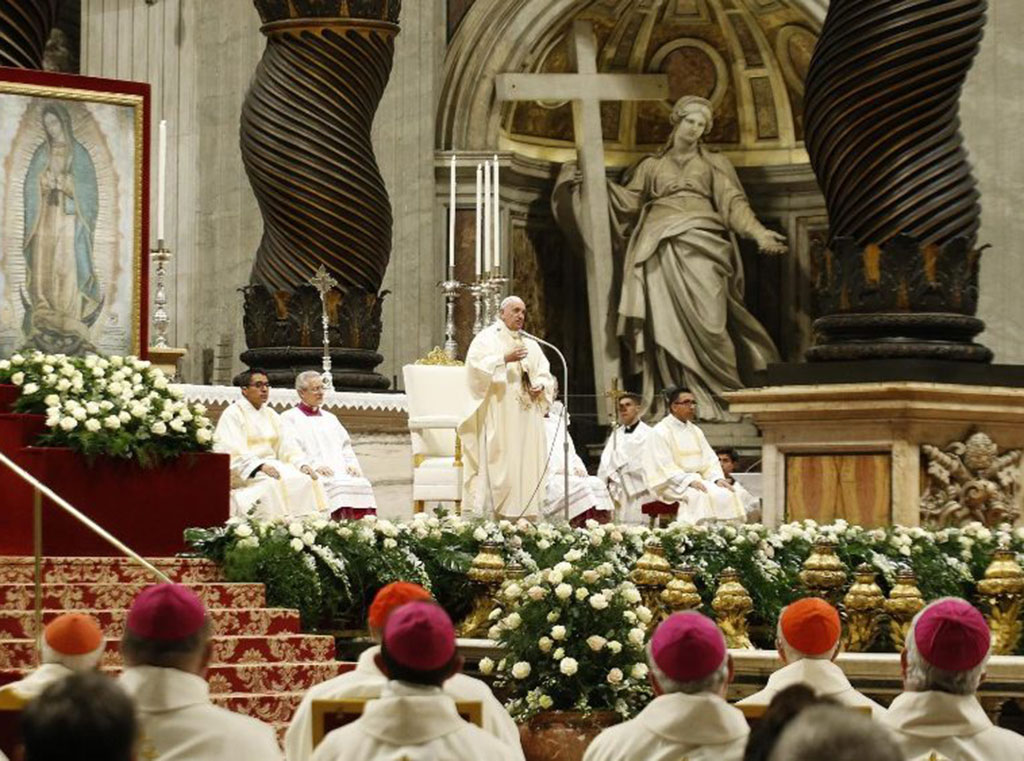 U četvrtak 12. prosinca papa Franjo je u bazilici Sv. Petra slavio euharistijsko prigodom blagdana Gospe od Guadalupe.