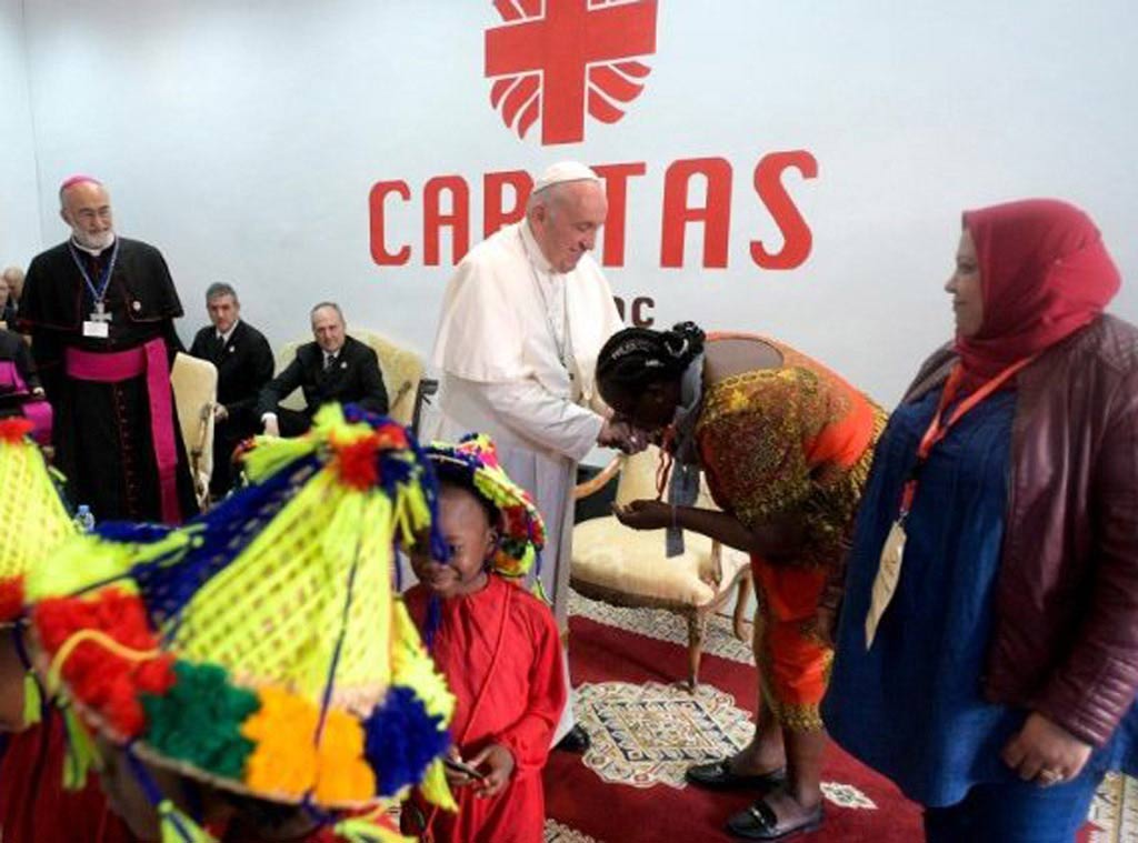 Papa Franjo susreo se na kraju prvog dana svog dvodnevnog apostolskog pohoda Maroku, 30. ožujka, s migrantima u Caritasovom biskupijskom centru u Rabatu.