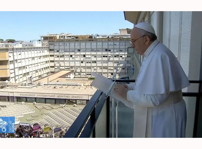Papa Franjo predmolio je u nedjelju, 11. srpnja molitvu Anđeo Gospodnji s balkona poliklinike Agostino Gemelli gdje se oporavlja nakon operacije abdomena kojoj je podvrgnut 4. srpnja.