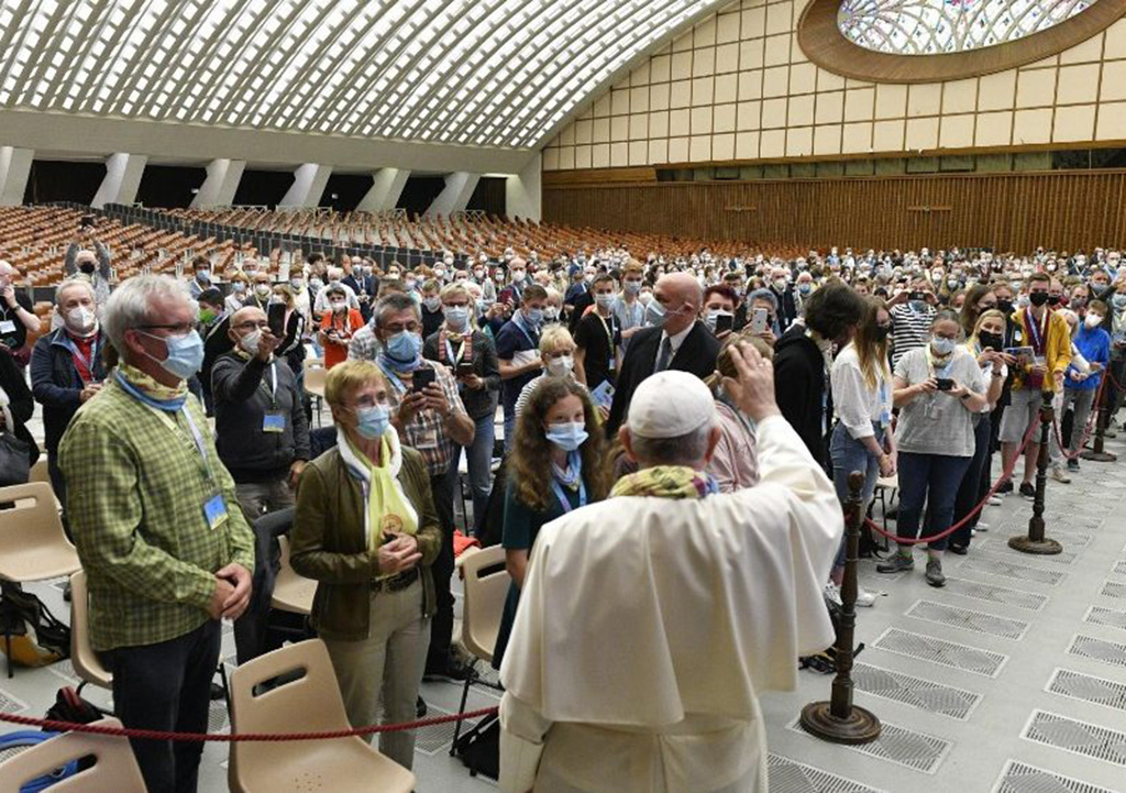 Papa je hodočasnicima govorio o zbornosti, i to zbornosti koja ne znači samo „govoriti“, nego i „slušati“, upravo onako kako se događa u nekom zboru. “Na početku ste me pozdravili zajedničkom pjesmom. Pjevanje povezuje. U zboru nitko nije sam; važno je slušati druge. Crkvi želim tu spremnost za slušanje. To ponovno učimo u sinodalnom hodu”, rekao je Sveti Otac.